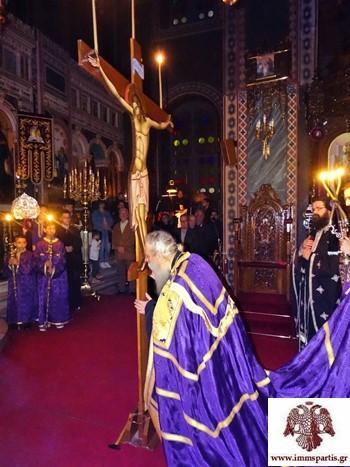 Πλήθος πιστών συνέρρευσε για να προσκυνήσει τον Εσταυρωμένο και να συμπροσευχηθεί. Κατακλείοντας την ακολουθία, ο σεπτός Ποιμενάρχης μας αναφέρθηκε στα φριχτά βασανιστήρια και τη θυσία του Κυρίου ημών Ιησού Χριστού καλώντας παράλληλα το εκκλησίασμα να αναλογιστεί την απέραντη αγάπη του Θεού προς τον Άνθρωπο. Ολοκληρώνοντας ευχήθηκε η Ανάσταση του Κυρίου να αποτελέσει το έναυσμα για την ψυχική και πνευματική μας ανύψωση.