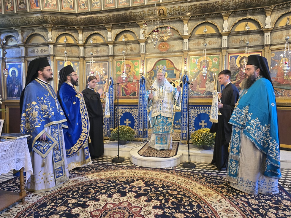 Έτσι στις Κυριακάτικες Ακολουθίες του Όρθρου και της Θείας Λειτουργίας προέστη ο Σεβασμιώτατος Μητροπολίτης Ιερισσού, Αγίου Όρους και Αρδαμερίου κ. ΘΕΟΚΛΗΤΟΣ, πλαισιούμενος από τους Παν. Αρχιμ. π. Δημήτριο Τζιαφά, Ιεροκήρυκα της Ιεράς Μητροπόλεως Θεσσαλονίκης, π. Δωρόθεο Ζέρβα, Πρωτοσύγκελλο της Ι.Μ. Ιερισσού και π. Νικόδημο Κωτινούδη, Εφημέριο της Ενορίας και συνεργάτη του στα Γραφεία της Ι.Μητροπόλεως.