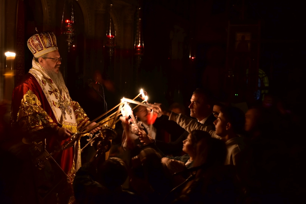 Με μεγαλοπρέπεια εορτάζεται το Άγιο Πάσχα στον Μητροπολιτικό Ιερό Ναό του Αγίου Αχιλλίου! Ο Σεβασμιώτατος Μητροπολίτης μας Λαρίσης και Τυρνάβου κ. Ιερώνυμος, παρουσία της πολιτικής και στρατιωτικής ηγεσίας της περιοχής, χοροστάτησε στην Ακολουθία της Παννυχίδος και του Όρθρου και τέλεσε την Θεία Λειτουργία του Πάσχα, πλαισιούμενος από τους Εφημερίους του Ναού Αρχιμ. Ραφαήλ Ευαγγέλου και Πρωτοπρ. Σπυριδωνα-Αθανάσιο Σάσσαλο, καθώς και τον Αρχιδιάκονο Ιεράς μας Μητροπόλεως Θεοδωρο Κούτλα.