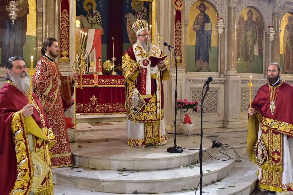 Ο προϊστάμενος του Ιερού Ναού π. Ραφαήλ ανέγνωσε την πασχαλινή εόρτιο Εγκύκλιο του Σεβασμιωτάτου, ευλογήθηκαν τα πασχάλια ωά, ενώ προ της απολύσεως ο Σεβασμιώτατος ευχήθηκε ο Αναστάς Κύριός μας να ευλογεί τον λαό του και να μην λησμονήσουμε ποτέ πως η ζωή νικά τον θάνατο!