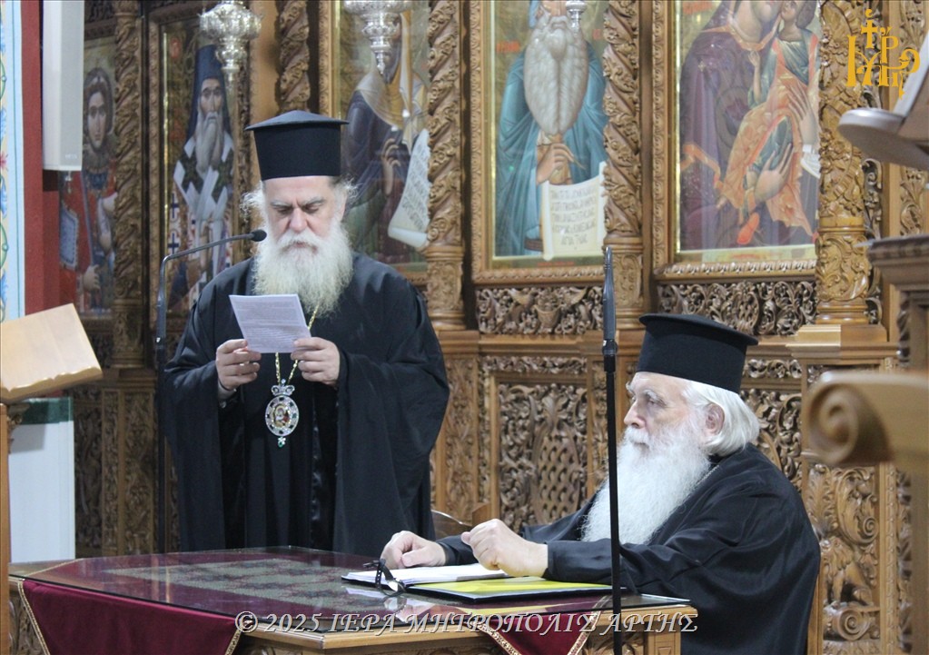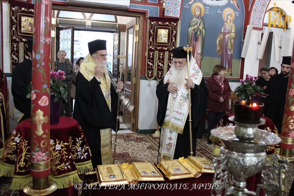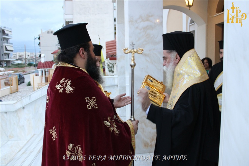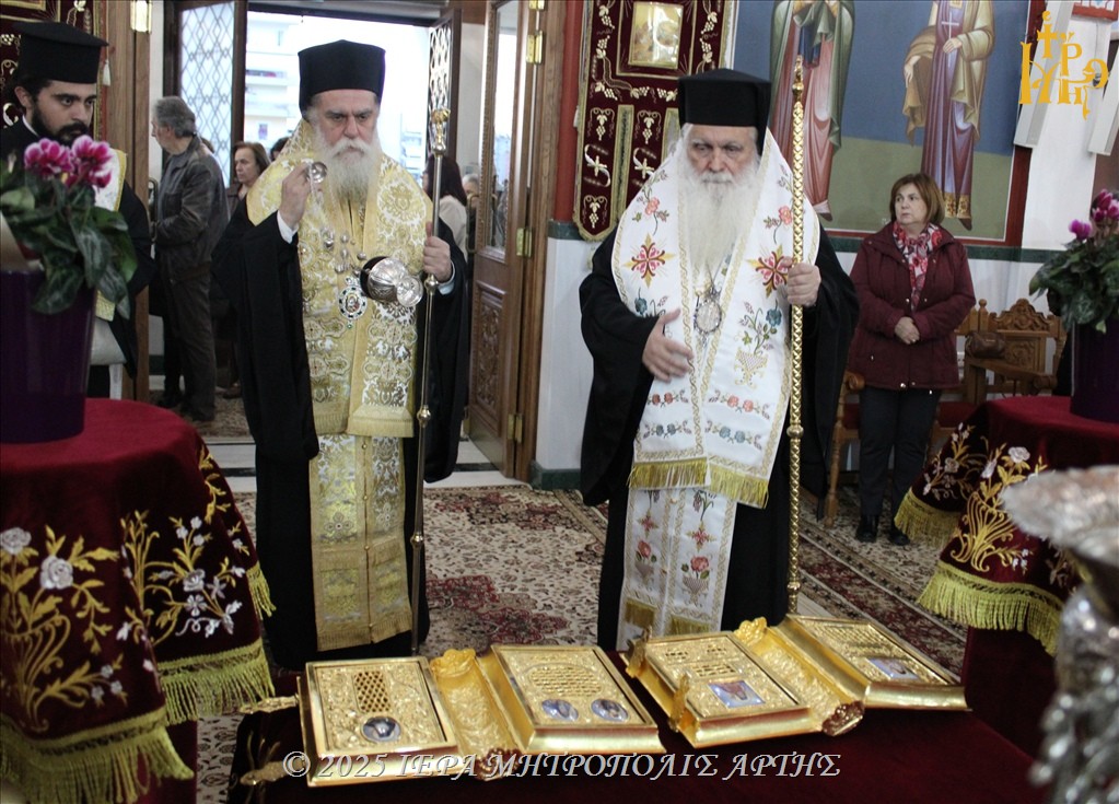 Με το πέρας του Ευχελαίου, ο Σεβασμιώτατος Μητροπολίτης Ἀρτης κ. Καλλίνικος καλωσόρισε και ευχαρίστησε θερμά τον Μητροπολίτη Ἀργολίδος για την ευλογία των Αγίων Λειψάνων και για την παρουσία του. Με λόγια αγάπης ανέδειξε την προσφορά, τη σεμνότητα και τη διαρκή διακονία του κ. Νεκταρίου, τόσο στην Ἐκκλησία, όσο και στους νέους ανθρώπους, που στηρίζει μέσα από ποικίλες κοινωνικές δράσεις στην Ελλάδα και στο εξωτερικό.