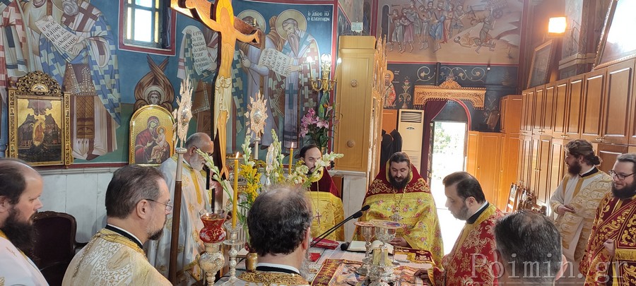 Της πανηγυρικής Θείας Λειτουργίας, προΐστατο ο Πανοσιολογιώτατος Αρχιμανδρίτης π. Καλλίνικος Νικολάου, Ιεροκήρυκας της Ι. Μητροπόλεως Καισαριανής Βύρωνος και Υμηττού.