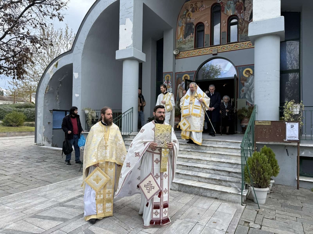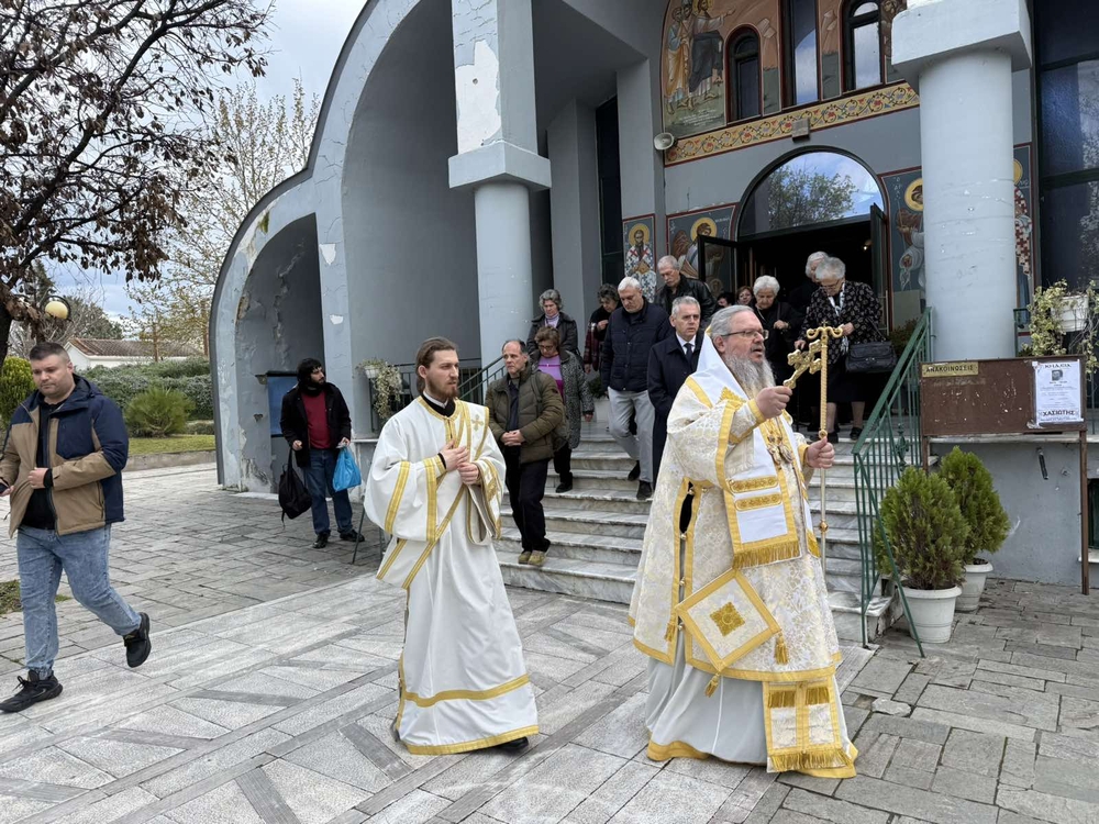 Κατά τον Όρθρο και τη Θεία Λειτουργία έψαλαν οι υιοί του π. Δημητρίου Καρανίκα, οι οποίοι απέδωσαν τους ύμνους κατανυκτικά. Προσήλθαν πολλοί πιστοί, οι οποίοι συνηθίζουν τα Σάββατα να εκκλησιάζονται στο Νέο Κοιμητήριο Λάρισας και στη συνέχεια να περιποιούνται τα μνήματα των προσφιλών τους κεκοιμημένων, ιδίως σήμερα Σάββατο του Λαζάρου, οπότε τα προετοιμάζουν και για την ακολουθούσα Μεγάλη Εβδομάδα.
