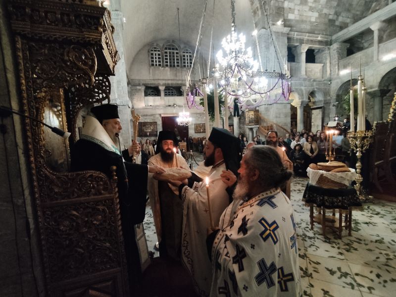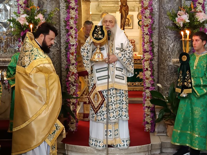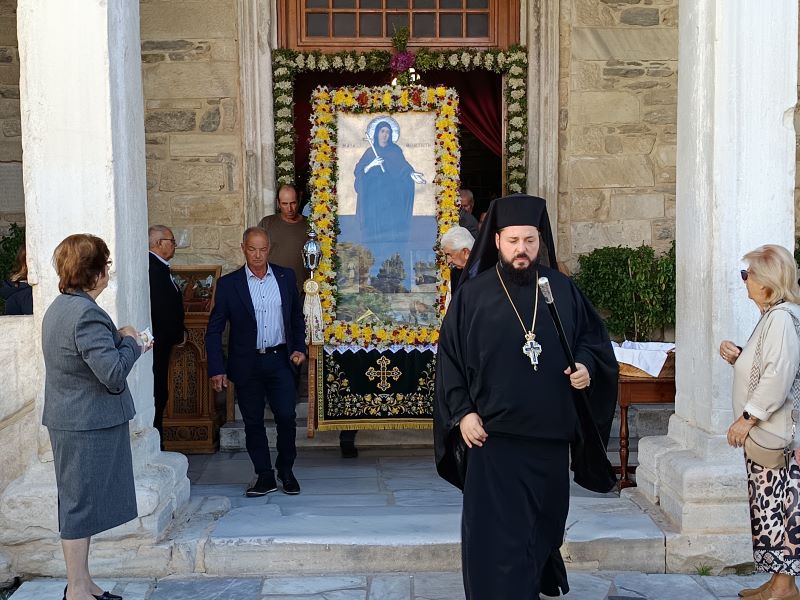 Την παραμονή της εορτής στο Πανηγυρίζον Ιερό Προσκύνημα Παναγίας Εκατονταπυλιανής, όπου εβρίσκετε και ο τάφος της τιμωμένης Αγίας, τελέσθηκε Πανηγυρικός Εσπερινός, χοροστατούντος του Σεβασμιωτάτου Μητροπολίτου μας κ. Καλλινίκου και τη συμμετοχή κληρικών της Μητροπόλεως. Κατά την διάρκεια της Ακολουθίας ο Σεβασμιώτατος ευλόγησε τους προσφερθέντες άρτους ενώ τον θείο λόγο κήρυξε ο Ιεροκήρυκας της Ιεράς Μητροπόλεως, Αρχιμ. Αρσένιος Μελισσιανός.