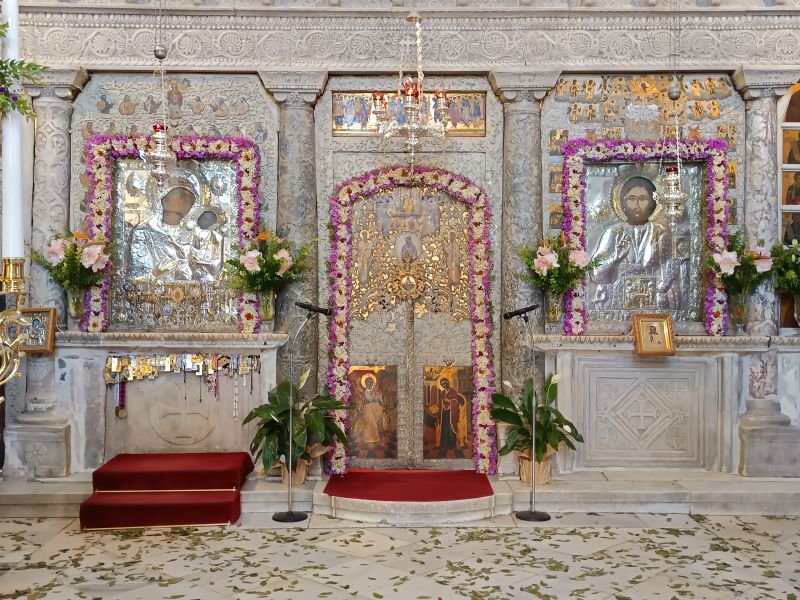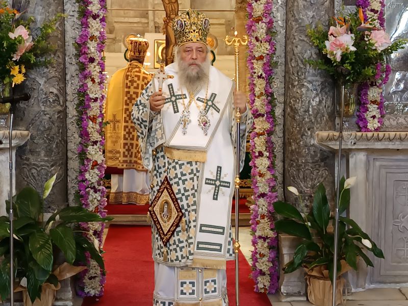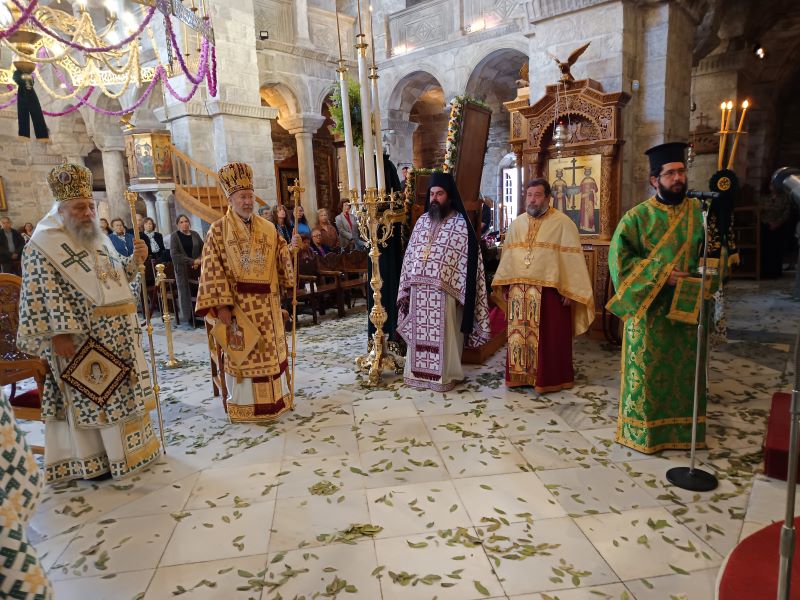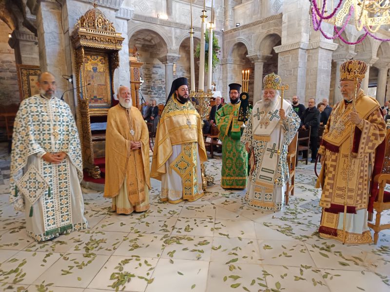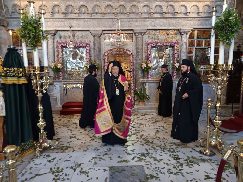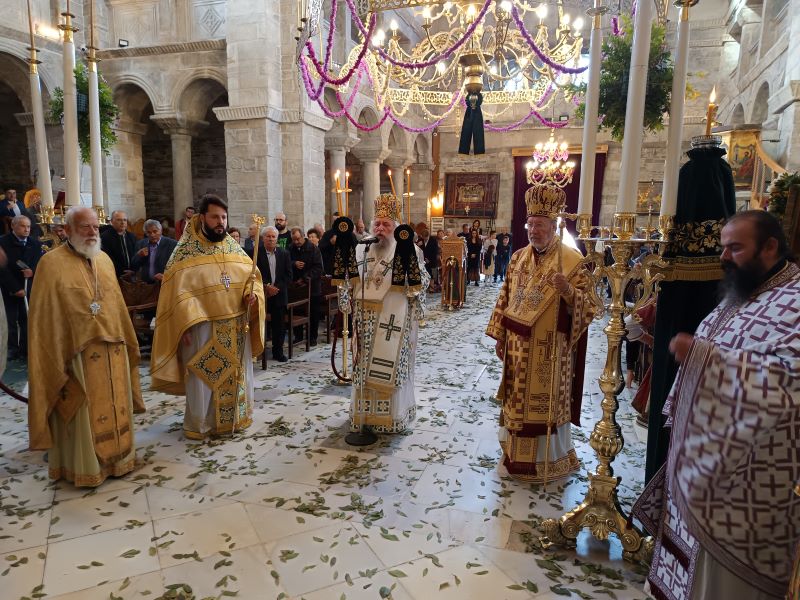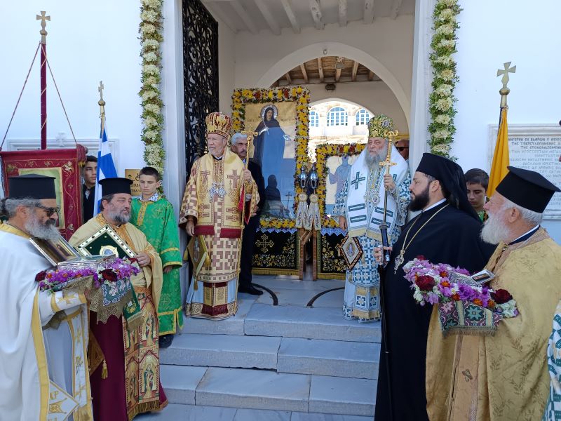 Την κυριώνυμο ημέρα στο Ιερό Προσκύνημα Παναγίας Εκατονταπυλιανής, τελέσθηκε Πανηγυρική Θεία Λειτουργία, προεξάρχοντος του Σεβασμιωτάτου Ποιμενάρχου μας, Μητροπολίτου Παροναξίας κ. Καλλινίκου και συλλειτουργούντος του Θεοφιλεστάτου Επισκόπου Κεράμων κ. Βαρθολομαίου, ο οποίος και χοροστάτησε νωρίτερα στην Ακολουθία του Όρθρου.