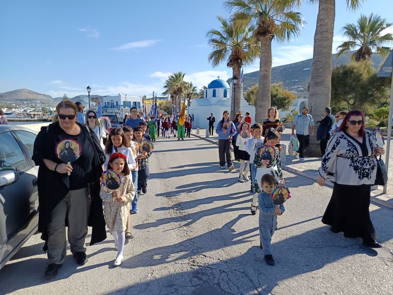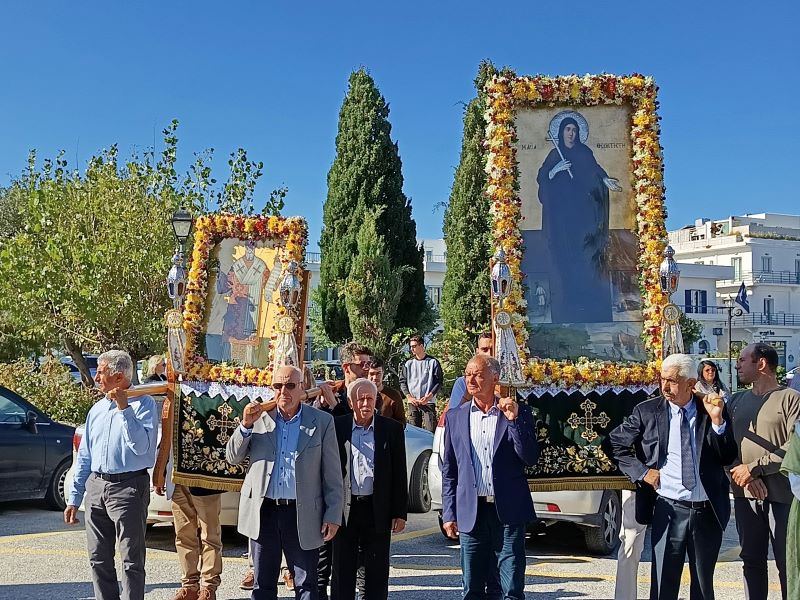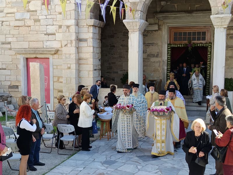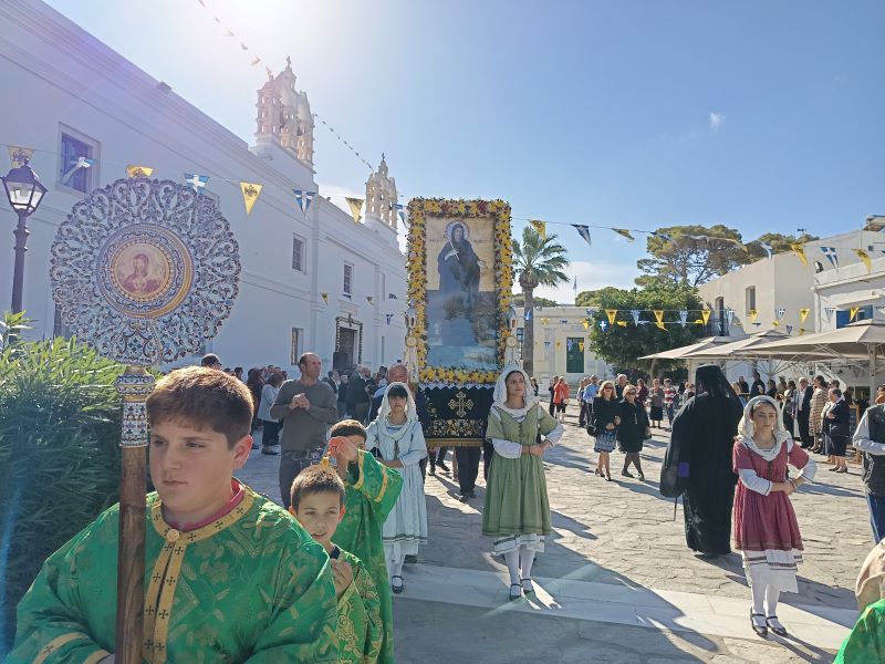 Μετά την Θεία Λειτουργία, πραγματοποιήθηκε η Λιτάνευση των Ιερών Εικόνων και των Τιμίων Λειψάνων των τιμωμένων Αγίων με τη συμμετοχή των παιδιών των Κατηχητικών Σχολείων του Ιερού Προσκυνήματος καθώς και των παιδιών του Κέντρου Τέχνης και Πολιτισμού Πάρου «ΤΕΧΝΗΝΤΑΡΙ».