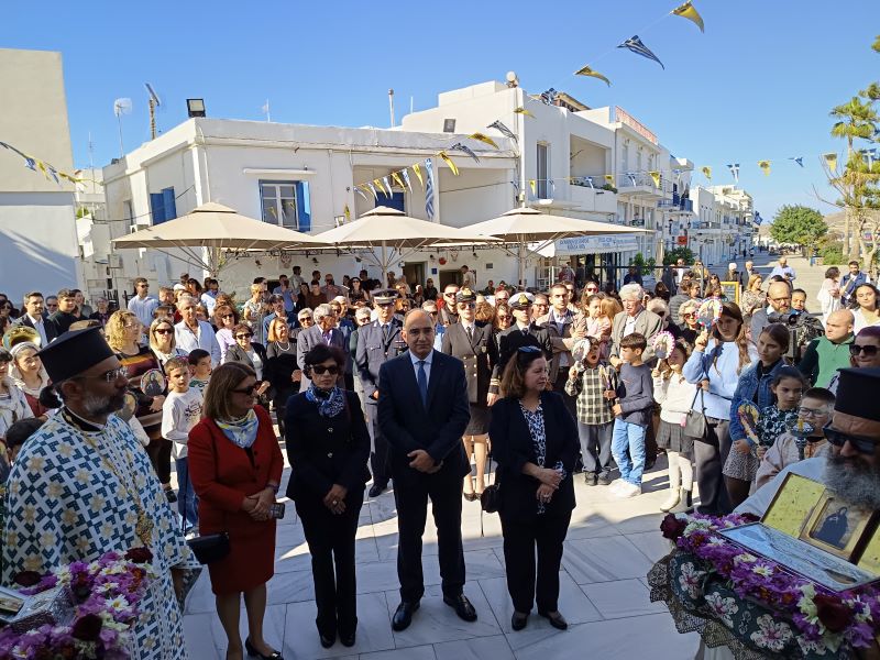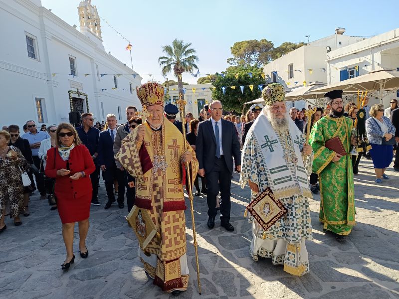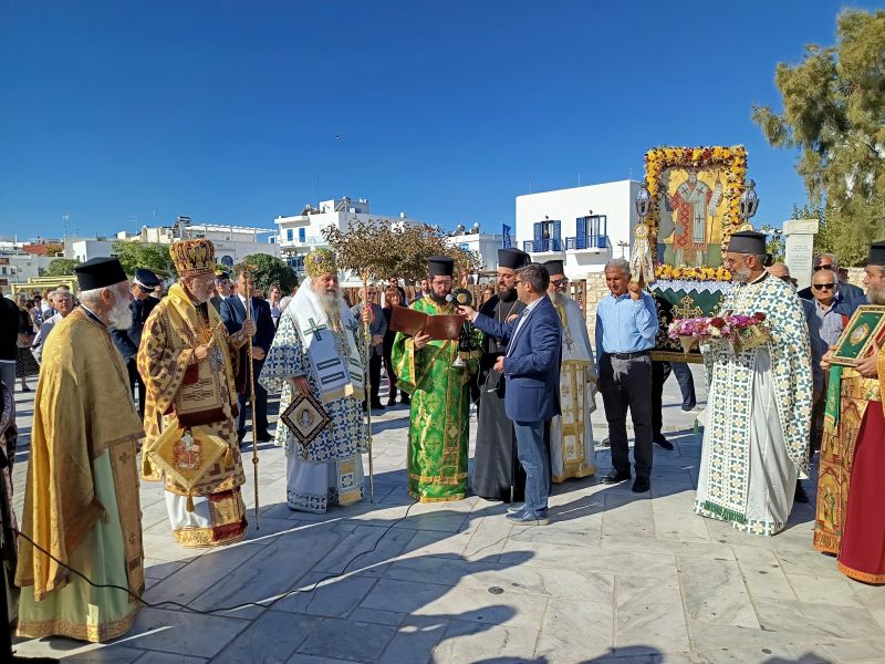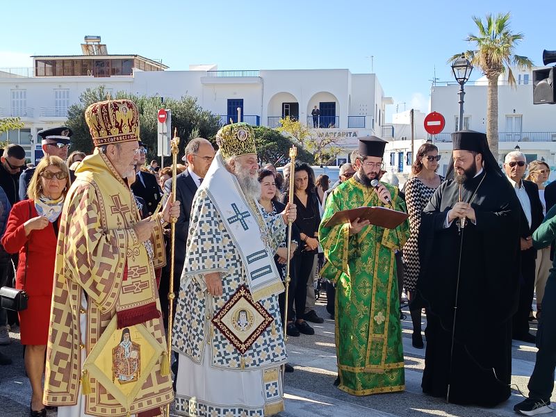Επανελθούσης της Ιεράς Λιτανεύσεως και αφού εψάλη η ακροτελεύτιος Δέηση, ο Σεβασμιώτατος ευχαρίστησε για την συμμετοχή τους, τον Θεοφιλέστατο και τους Κληρικούς, τον Δήμαρχο Πάρου κ. Κώστα Μπιζά, τον επικεφαλής της Μειοψηφίας του Δήμου και πρ. Δήμαρχο Πάρου κ. Μάρκο Κωβαίο, τους εκπροσώπους της Τοπικής Αυτοδιοίκησης, των Σωμάτων Ασφαλείας, των Πολιτιστικών Φορέων και Συλλόγων του νησιού, τους Διευθυντές και τους εκπαιδευτικούς των σχολείων της πόλεως που απέστειλαν τις αντιπροσωπείες των μαθητών με τις σημαίες τους, τους Ιερείς του Ιερού Προσκυνήματος και τα μέλη της Διοικούσης Επιτροπής για την προετοιμασία της Πανηγύρεως καθώς και τον χορό των Ιεροψαλτών, ο οποίος με επικεφαλής τον Πρωτοψάλτη του Ιερού Προσκυνήματος κ. Ζαχαρία Ραγκούση, απέδωσε μελωδικότατα τους εκκλησιαστικούς ύμνους της εορτής. Σε όλους ο Σεβασμιώτατος ευχήθηκε πλουσία την ευλογία των Αγίων στη ζωή τους και τις οικογένειές τους.