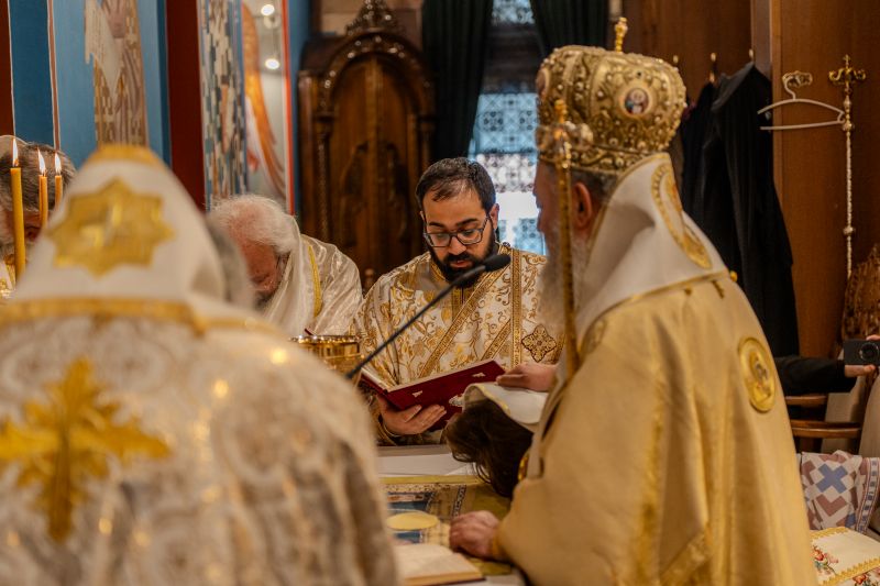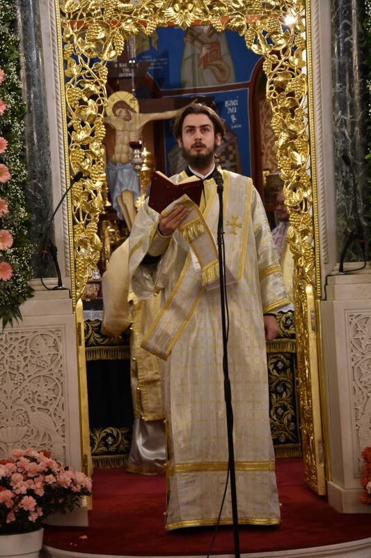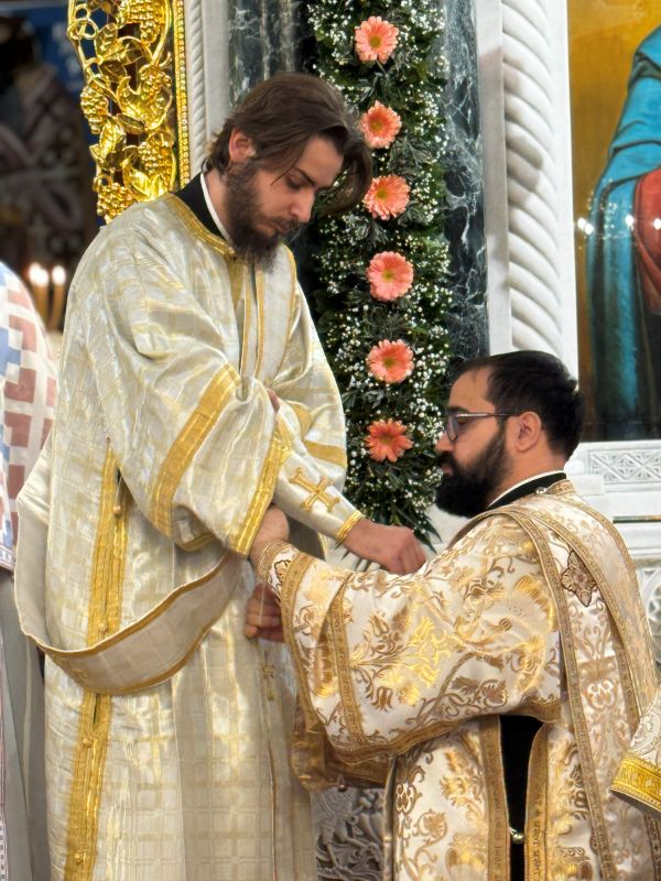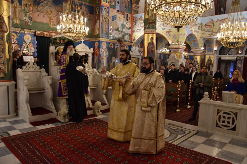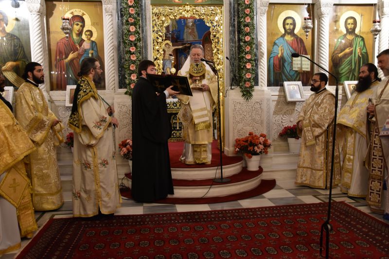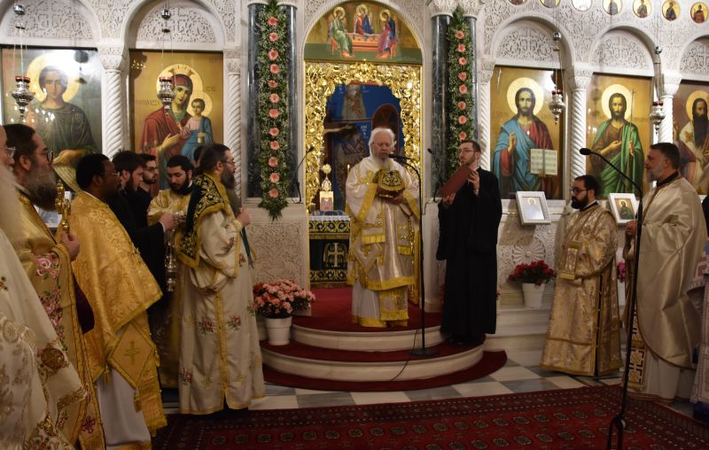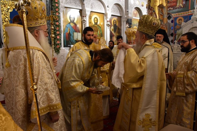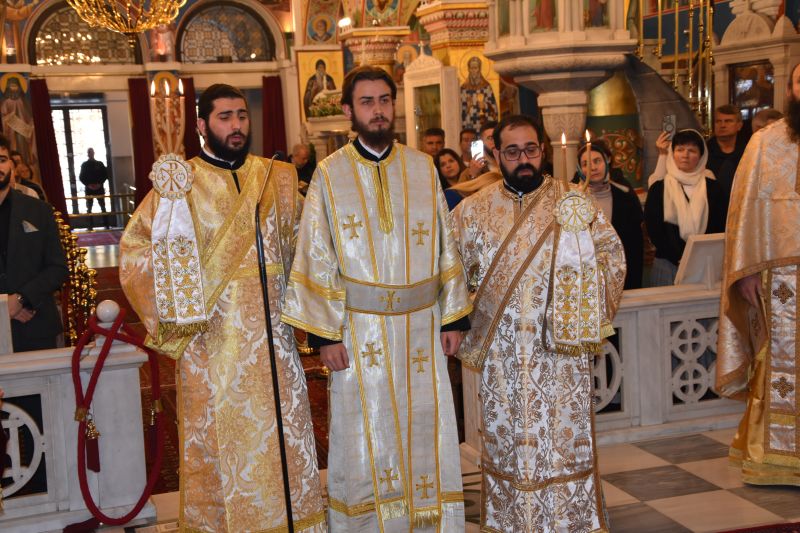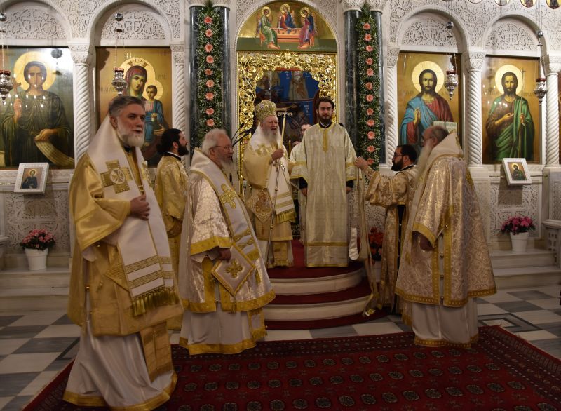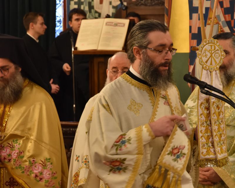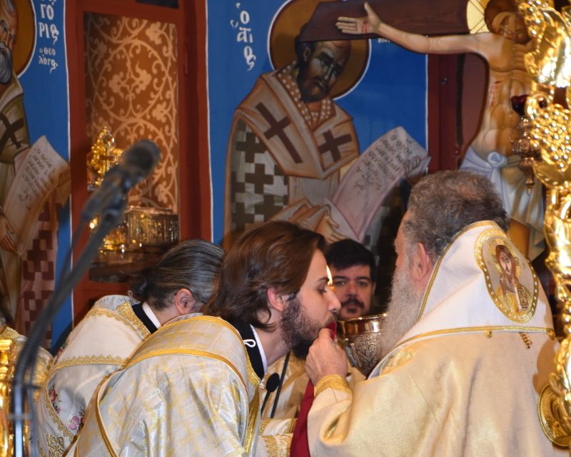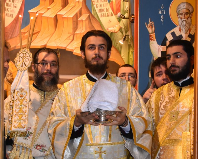 Κατά το ακολουθήσαν Αρχιερατικό Συλλείτουργο, προέστη ο Σεβασμιώτατος Μητροπολίτης Χαλκίδος κ. Χρυσόστομος, ο οποίος τέλεσε και την εις Διάκονον χειροτονία του μοναχού Μαξίμου Χοϊένκο, αδελφού της Ι. Μονής αγ. Γεωργίου «ΑΡΜΑ» και φοιτητού της Θεολογικής Σχολής του ΕΚΠΑ.