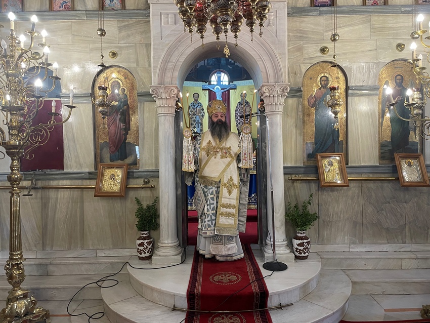 Ο Σεβ. Ποιμενάρχης της Κορίνθου στο τέλος της Θ. Λειτουργίας ευχήθηκε στους μαθητές να έχουν καλή πρόοδο, προκοπή βίου και πίστεως και στους δασκάλους τους υγεία και φώτιση.