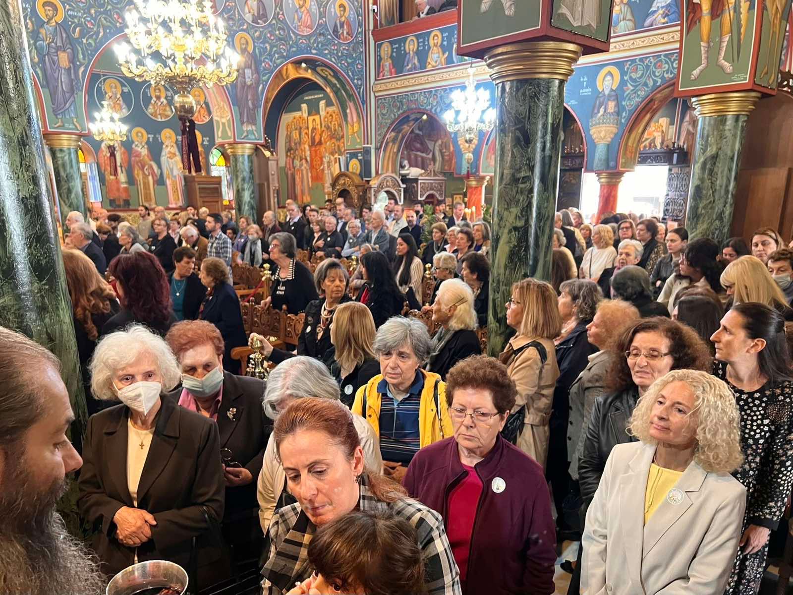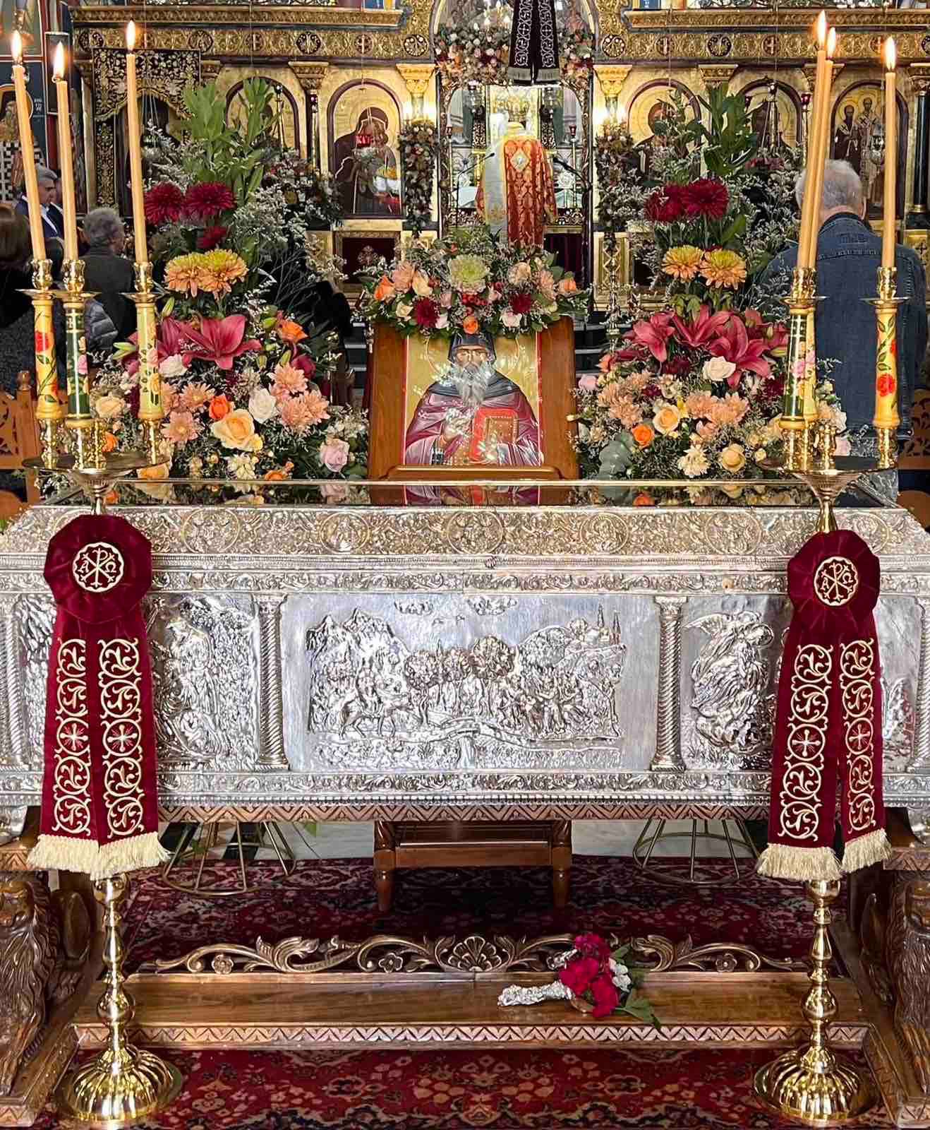 Στη Θεία Λειτουργία παρέστησαν ο Δήμαρχος Ν. Ιωνίας κ. Παναγιώτης Μανούρης, Αντιδήμαρχοι και μέλη των Δημοτικών Συμβουλίων και των τριών Δήμων της μητροπολιτικής περιφέρειας, ο Πρόεδρος της Διοικούσας Επιτροπής του ΚΕ.ΜΙ.ΠΟ. του Δήμου Ν. Ιωνίας κ. Λουκάς Χριστοδούλου, εκπρόσωποι προσφυγικών σωματείων και τοπικών πολιτιστικών συλλόγων, φορείς της πόλεως και πλήθος πιστών, οι οποίοι προσήλθαν με ευλάβεια για να προσκυνήσουν το Ιερό Σκήνωμα του Αγίου και το τεμάχιο του Τιμίου Ξύλου, που τίθεται σε προσκύνηση στον Ιερό Ναό.