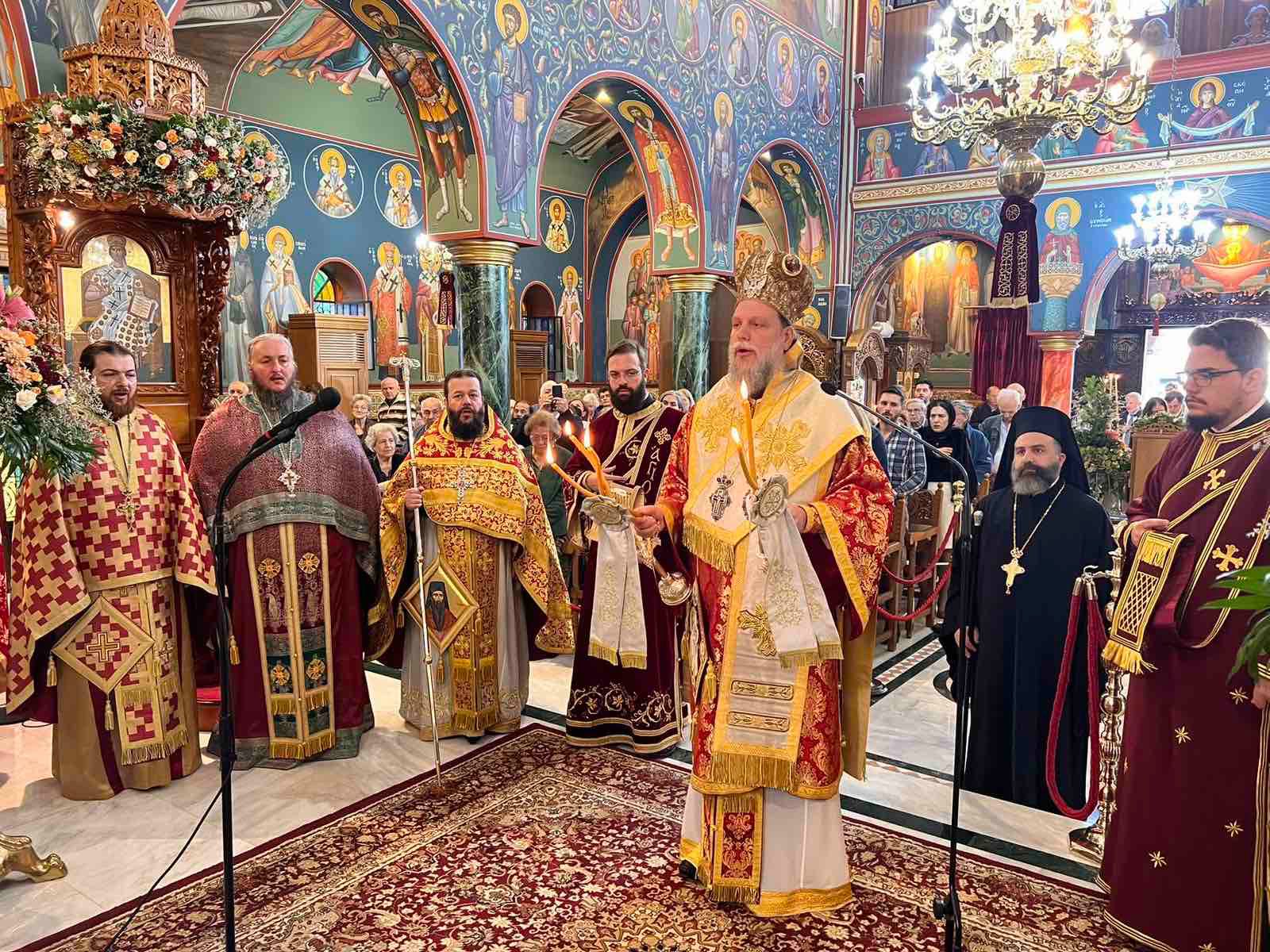 Μετά το Ευαγγελικό Ανάγνωσμα, ο Σεβασμιώτατος αναφέρθηκε στη μαρτυρική θυσία και στην ακλόνητη πίστη του Αγίου Γεωργίου του Νεαπολίτου, καθώς και στο πνευματικό μεγαλείο του Μικρασιατικού Ελληνισμού, ο οποίος, μέσα από τις δοκιμασίες και τις θυσίες του, διέταξε ζωντανή την πίστη και την παράδοση της Εκκλησίας.
