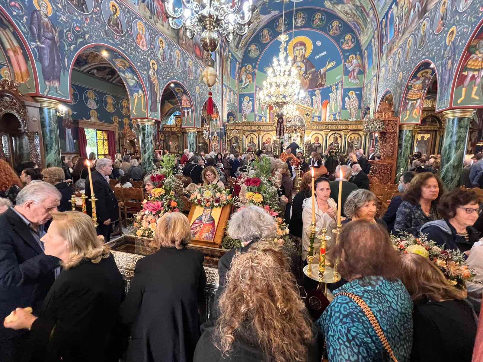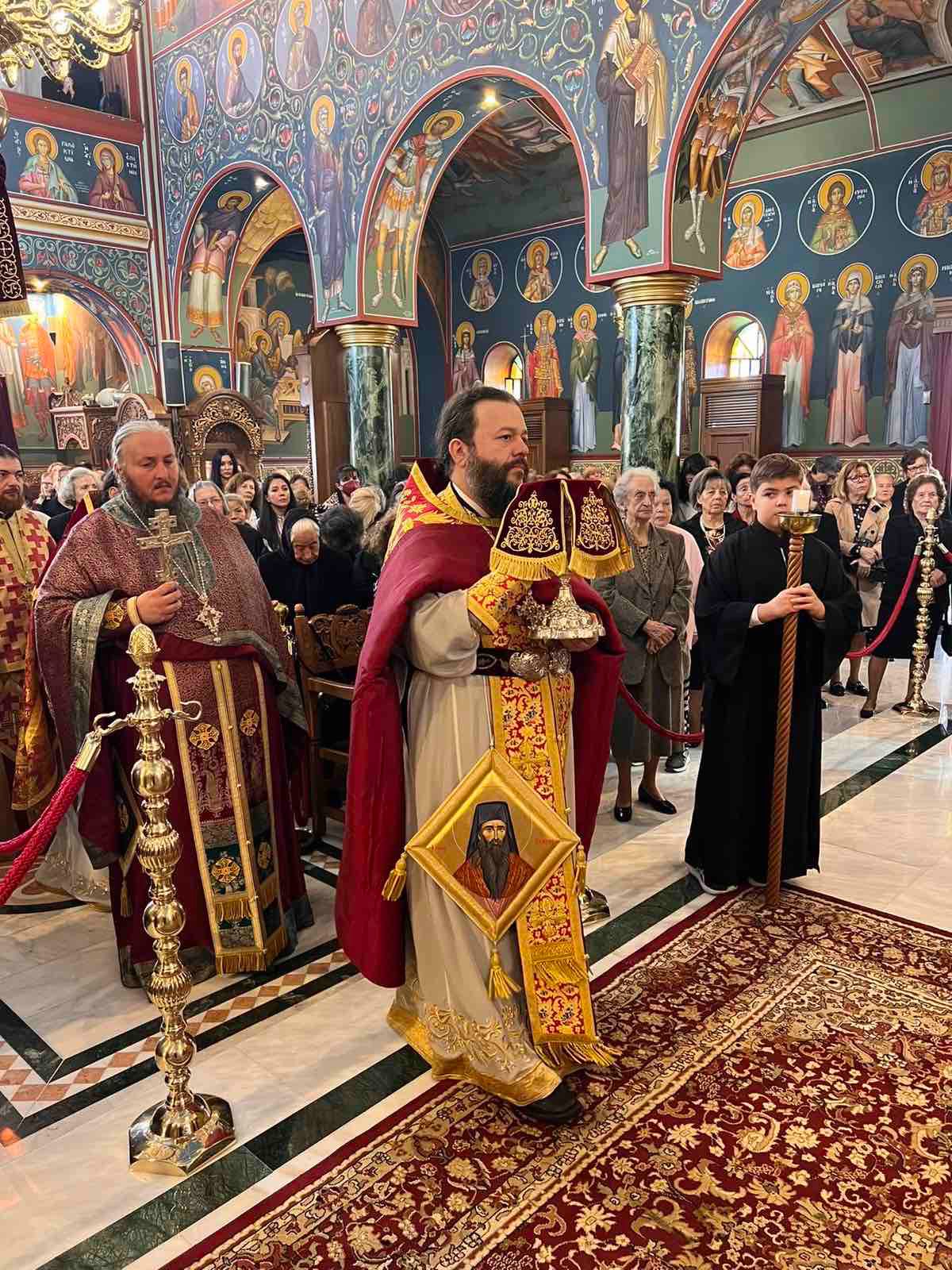 Ανήμερα της εορτής, Δευτέρα 3 Νοεμβρίου 2025, τελέσθηκε η Πανηγυρική Αρχιερατική Θεία Λειτουργία, ιερουργούντος του οικείου Ποιμενάρχου, Σεβασμιωτάτου Μητροπολίτου Νέας Ιωνίας κ. Γαβριήλ, και με τη συμμετοχή πλειάδας κληρικών, ενώ εντός του Ιερού Βήματος παρέστη συμπροσευχόμενος ο Σεβασμιώτατος Μητροπολίτης Ανέων κ. Μακάριος.