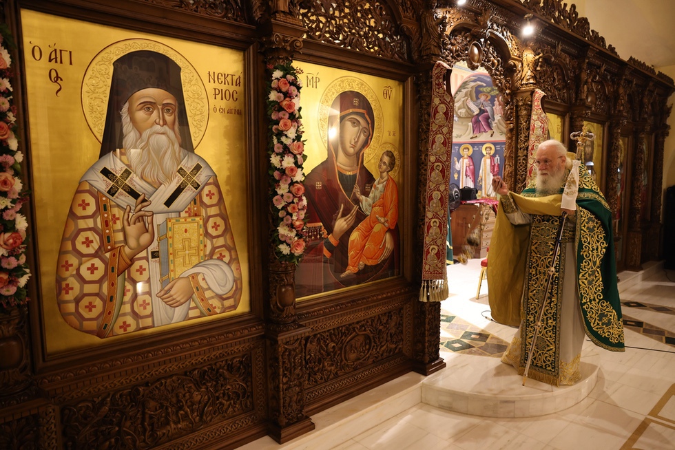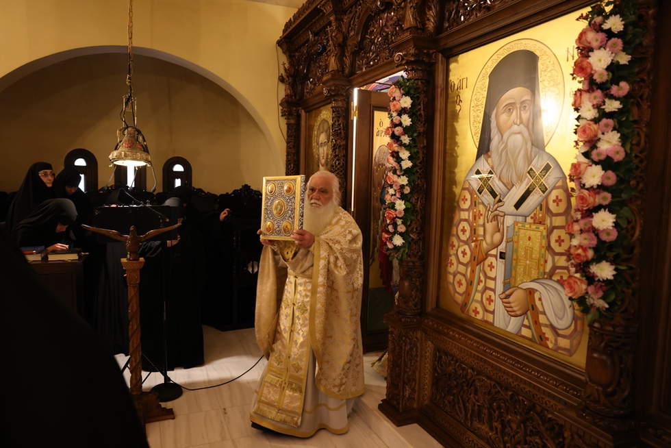 Οι πιστοί κατά την διάρκεια της εορτής του Αγίου Νεκταρίου είχαν την ευκαιρία να προσκυνήσουν ιερά λείψανα και αντικείμενα του Αγίου πού φυλάσσονται στην γυναικεία Ιερά Μονή.