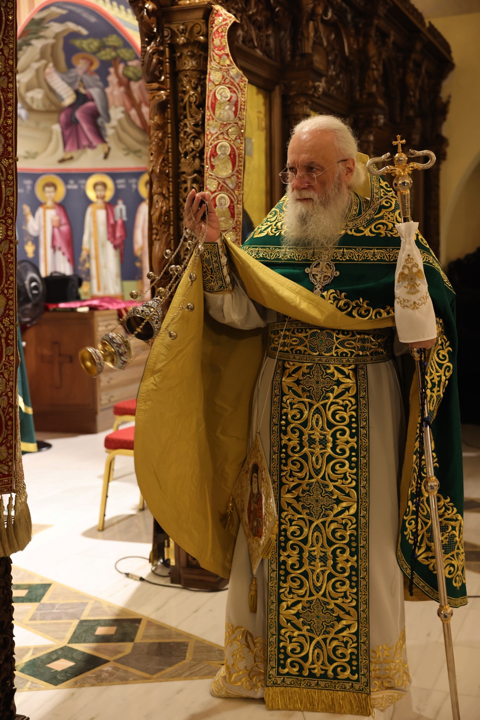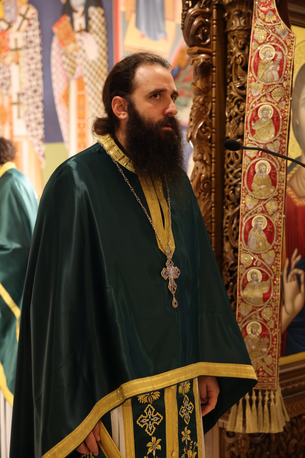 Το Σάββατο 8 Νοεμβρίου το απόγευμα στον πανηγυρικό Εσπερινό χοροστάτησε και κήρυξε τον θείο λόγο ο Κτίτωρ και Πνευματικός της γυναικείας Ιεράς Μονής Αγίου Νεκταρίου και Αγίου Φανουρίου, Πρωτοσύγκελλος της Ι.Μ. Φωκίδος Αρχιμ. Νεκτάριος Μουλατσιώτης, ο οποίος φέρει και το όνομα του Αγίου Νεκταρίου και άγει τα ονομαστήριά του, πλαισιούμενος από κληρικούς και Ιερομονάχους της Ι.Μ. Φωκίδος.