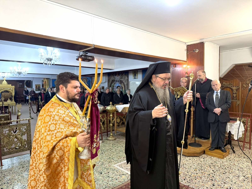 Στον υπόγειο Ιερό Ναό του Αγίου Ιωάννη Μονεμβασιώτη, όπου φυλάσσονται τα λείψανα του Αγίου και τον οποίον εγκαινίασε ο Σεβασμιώτατος προ διετίας, συγκεντρώθηκε πλήθος κόσμου, παρά το γεγονός ότι η σημερινή μέρα ήταν εργάσιμη, ενώ και ο καιρός δεν βοηθούσε. Γονείς οι περισσότεροι, ήθελαν να παρακαλέσουν τον Άγιο για τα παιδιά τους, καθώς με απόφαση της Ιεράς Μητροπόλεως Λαρίσης και Τυρνάβου, ο Άγιος Ιωάννης ο Μονεμβασιώτης είναι ο προστάτης της νεολαίας του τόπου μας και της πατρίδας μας.
