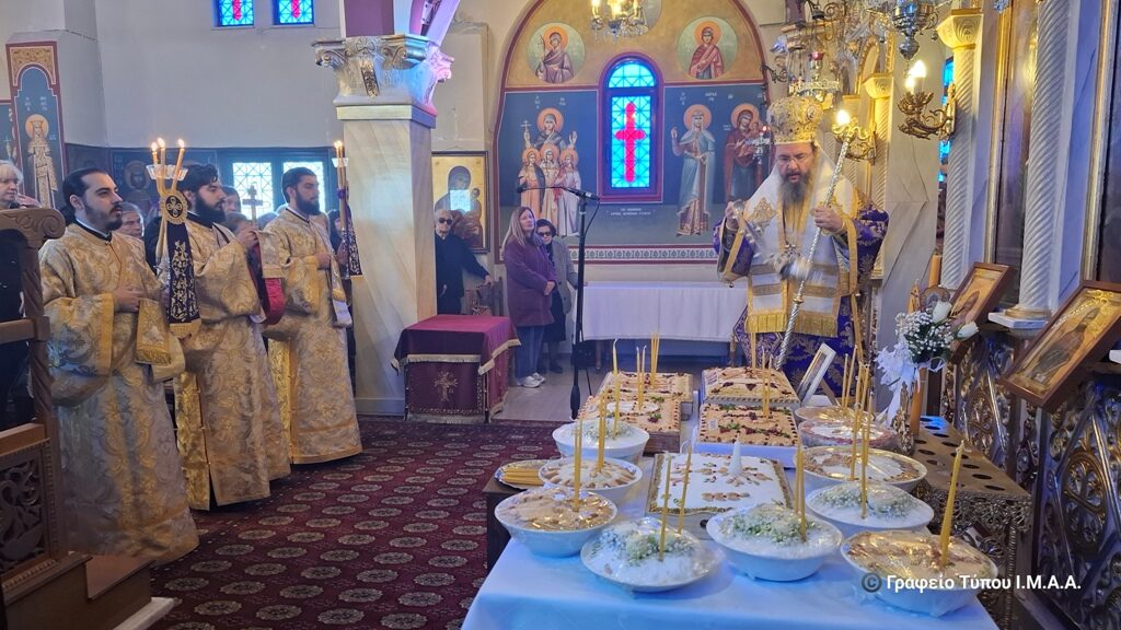 Στον Ιερό Κοιμητηριακό Ναό του Αγίου Γεωργίου, στο Δημοτικό Κοιμητήριο Αγρινίου, ιερούργησε ο Σεβασμιώτατος Μητροπολίτης Αιτωλίας και Ακαρνανίας κ. Δαμασκηνός, το Σάββατο 28 Φεβρουαρίου 2026, ημέρα που η Εκκλησία μας τιμά την ανάμνηση του δια κολλύβων θαύματος του Αγίου Μεγαλομάρτυρος Θεοδώρου του Τήρωνος.
