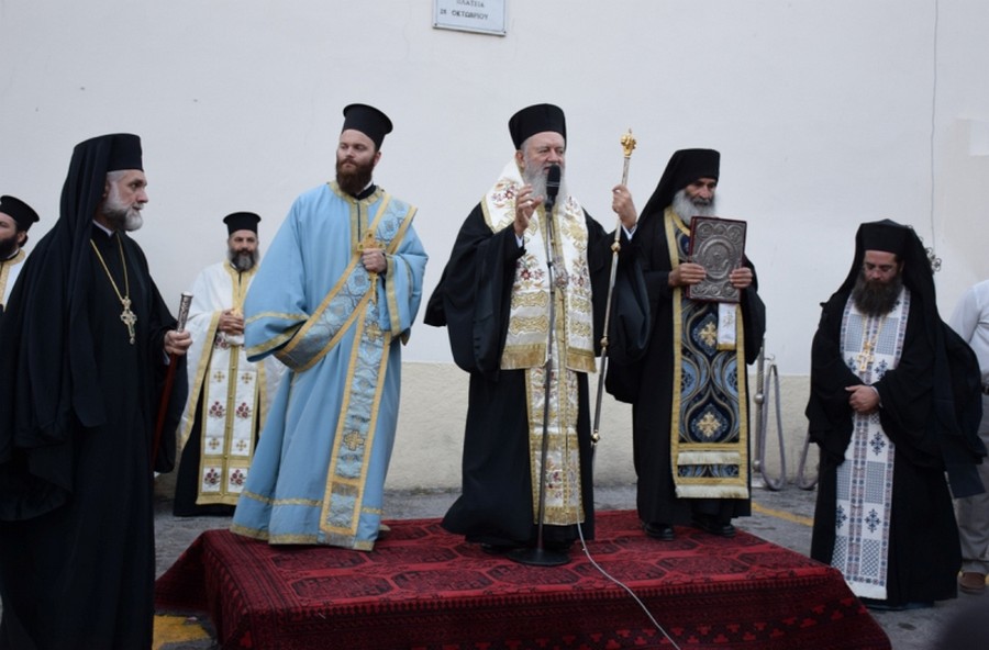 Στο τέλος της Λιτανείας και μετά την προβλεπομένη από την τάξη της Εκκλησίας Δέηση, ο Σεβασμιώτατος απηύθυνε θαυμάσια εόρτια ομιλία προς τους ευλαβείς προσκυνητές με θέμα την αγάπη του πιστού Λαού προς την Παναγία.