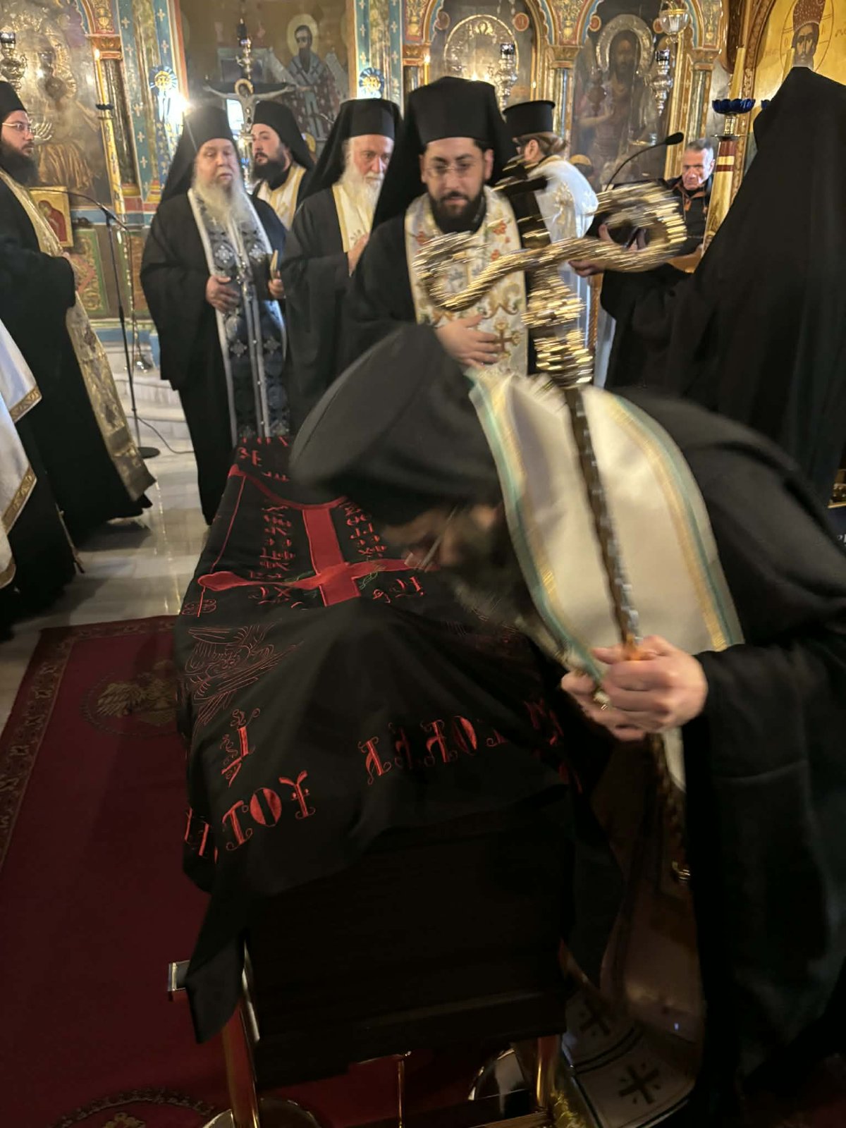 Σήμερα το πρωί, πριν την εξόδιο ακολουθία, τελέστηκε η Θεία Λειτουργία.