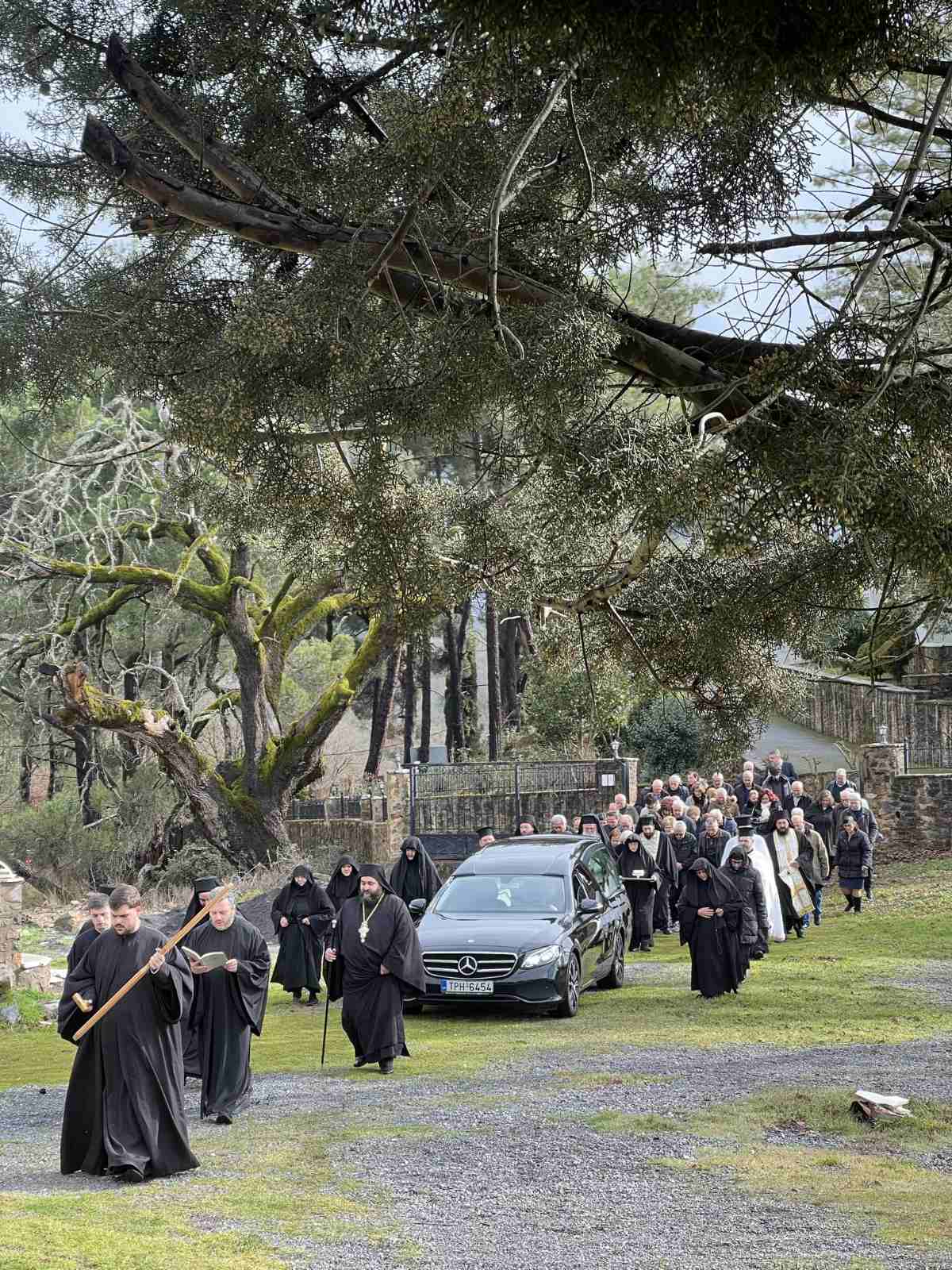 Τη νεκρώσιμη ακολουθία τέλεσε ο Θεοφιλέστατος Επίσκοπος Τεγέας κ. Θεόκλητος, συμπαραστατούμενος από τον Πρωτοσύγκελλο της Ιεράς Μητροπόλεως, Πανοσιολ. Αρχιμ. π. Στέφανο Καππέ, τον Καθηγούμενο της Μονής, Πανοσιολ. Αρχιμ. π. Γερμανό Μίχο και κληρικούς της ευρύτερης περιοχής.