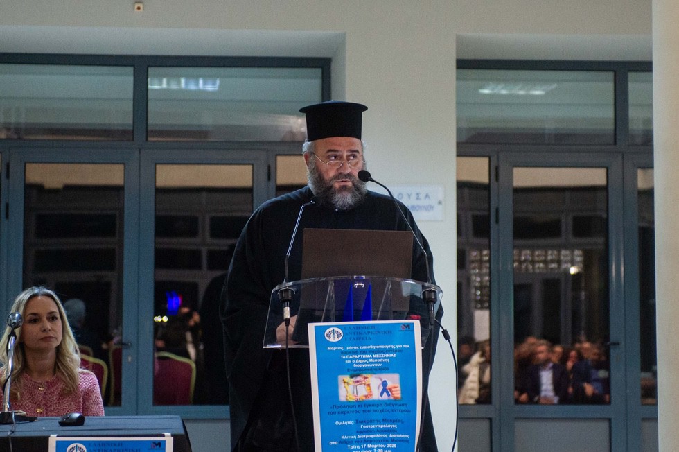 Με τη παρουσία πλήθους κόσμου πραγματοποιήθηκε το απόγευμα της Τρίτης 17 Μαρτίου ε.έ., στο Δημαρχείο της Μεσσήνης, ενημερωτική εκδήλωση με θέμα «Πρόληψη κι έγκαιρη διάγνωση του καρκίνου του παχέος εντέρου». Την εκδήλωση διοργάνωσε το Παράρτημα Μεσσηνίας της Ελληνικής Αντικαρκινικής Εταιρείας, το οποίο ιδρύθηκε με την πρωτοβουλία της Ιεράς Μητροπόλεως Μεσσηνίας, σε συνεργασία με το Δήμο Μεσσήνης και τους τρεις συλλογικούς φορείς Υγείας, τον Ιατρικό, τον Οδοντιατρικό και το Φαρμακευτικό Σύλλογο Μεσσηνίας.