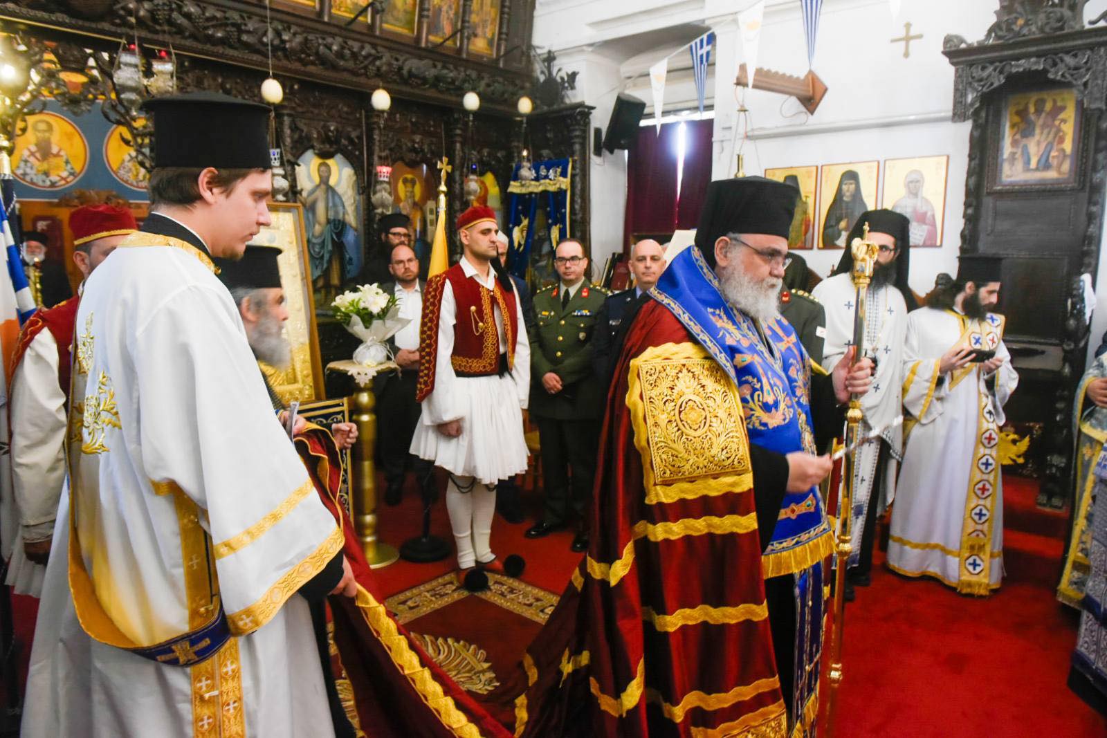 Η μέρα ξεκίνησε με Πανηγυρική Δοξολογία στον Ιερό Μητροπολιτικό Ναό Αγίου Γεωργίου, Πάνω Δευτεράς και ακολούθησε Μαθητική και Σωματειακή Παρέλαση.
