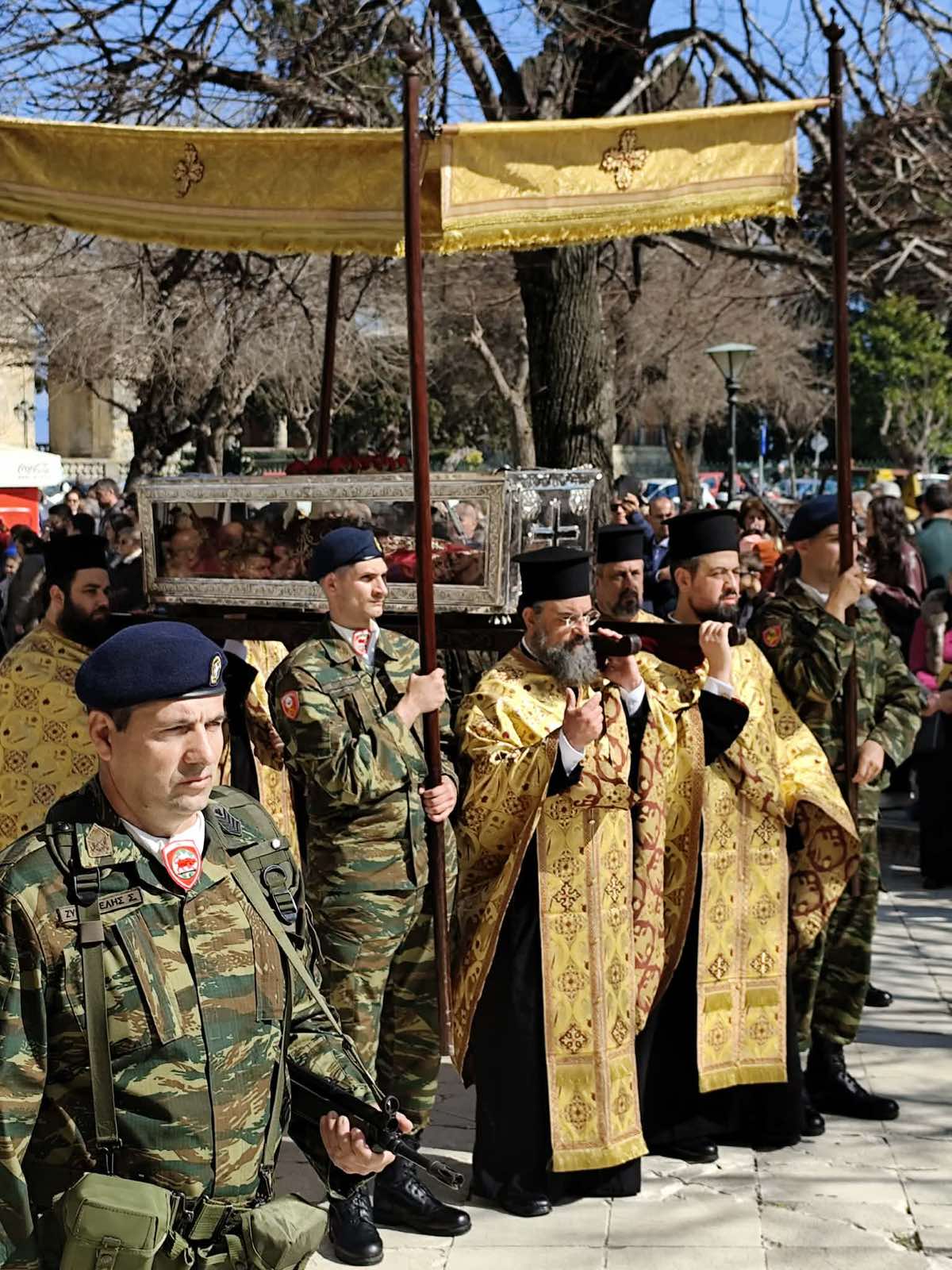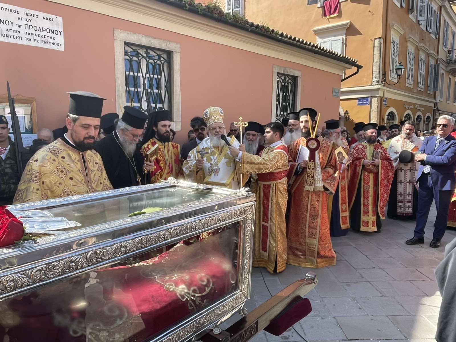 Στην λιτάνευση του ιερού σκηνώματος συμμετείχαν ο Υφυπουργός Ναυτιλίας και Νησιωτικής Πολιτικής κ. Στέφανος Γκίκας, οι βουλευτές κ. Δημήτριος Μπιάγκης και κ. Αλέκος Αυλωνίτης, ο αναπληρωτής Περιφερειάρχης κ. Χρήστος Άνθης, ο Δήμαρχος Κεντρικής Κέρκυρας κ. Στέφανος Πουλημένος και άλλοι εκπρόσωποι των πολιτικών, των στρατιωτικών και των εκπαιδευτικών αρχών, καθώς και πλήθος λαού.