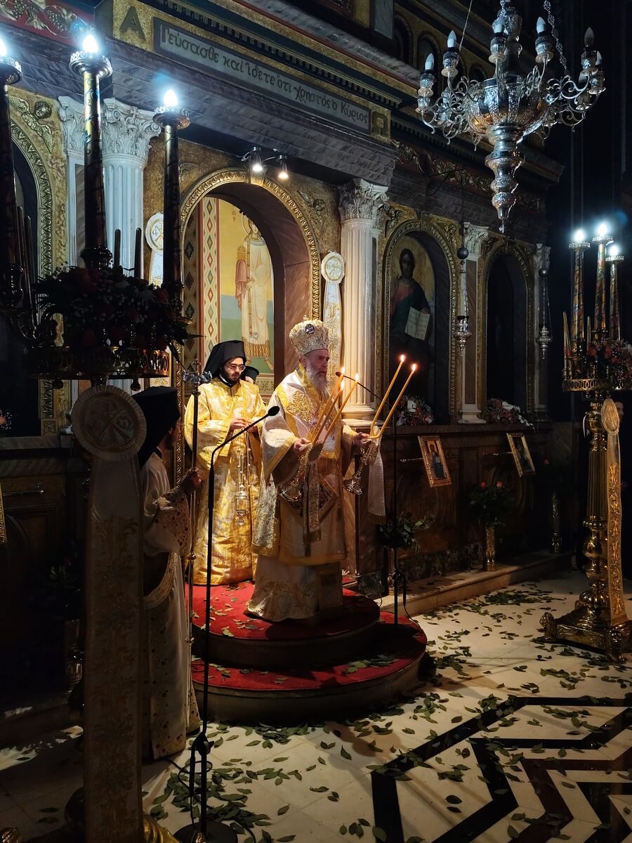 Ο Σεβασμιώτατος Μητροπολίτης μας κ. Τιμόθεος, το Μεγάλο Σάββατο 11 Απριλίου 2026 και ώρα 11:00 μ.μ., μέσα σε κλίμα βαθιάς κατανύξεως και προσμονής της λαμπροφόρου Αναστάσεως, χοροστάτησε στην ακολουθία του Μεσονυκτικού. Πλήθος ευσεβών πιστών προσήλθε στον Ιερό Ναό, συμμετέχοντας με ευλάβεια και συγκίνηση στην ιερά αυτή στιγμή της Εκκλησίας μας, αναμένοντας το χαρμόσυνο μήνυμα της νίκης της ζωής επί του θανάτου.