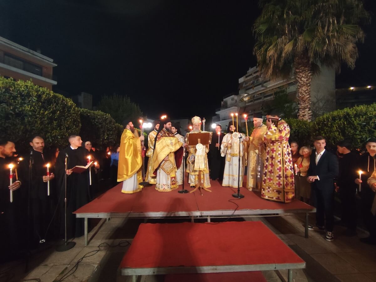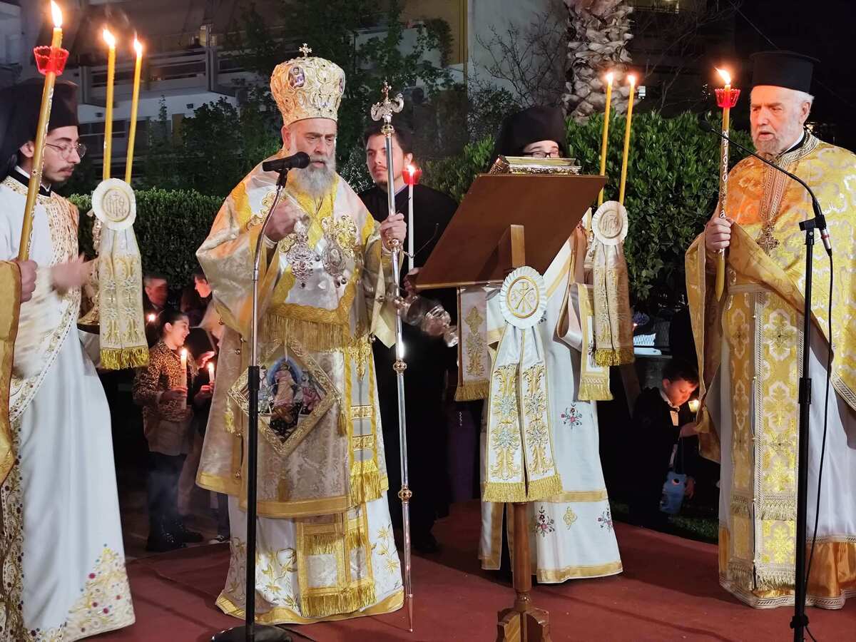 Στις 12:00 τα μεσάνυχτα, ο Σεβασμιώτατος προεξήρχε της τελετής της Αναστάσεως, κατά την οποία αντήχησε πανηγυρικά το «Χριστός Ανέστη», μεταδίδοντας σε όλους το ανέσπερο φως και την ανεκλάλητη χαρά της Αναστάσεως του Κυρίου. Οι πιστοί, με αναμμένες λαμπάδες, έλαβαν το Άγιο Φως και αντάλλαξαν τον ασπασμό της αγάπης, βιώνοντας το μυστήριο της Αναστάσεως ως προσωπική και εκκλησιαστική εμπειρία.