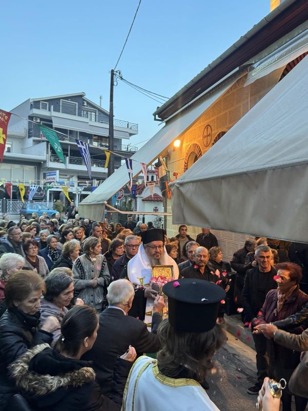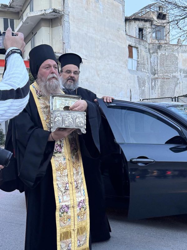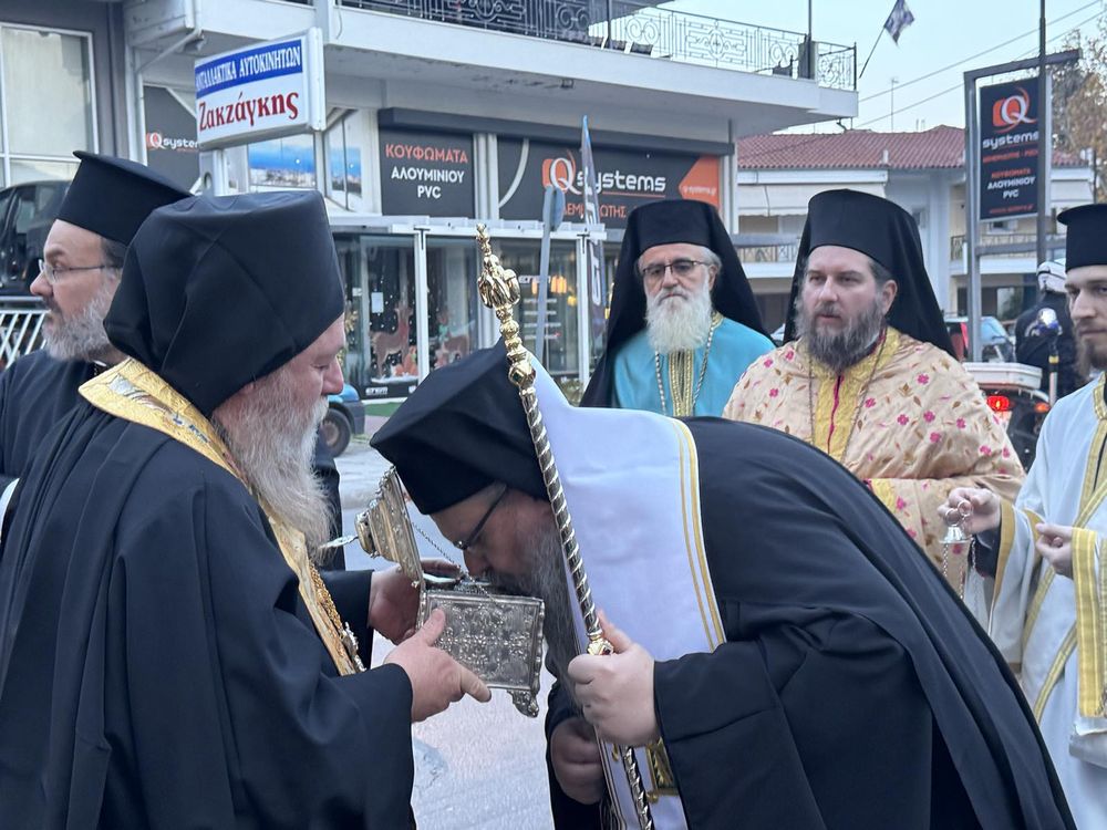 Το ιερό θησαύρισμα, το οποίο φυλάσσεται στο Μετόχιον της Αγίας Τριάδος Σάικας, της Ιεράς Μονής Κορώνης, υποδέχθηκε ο Σεβασμιώτατος Μητροπολίτης Λαρίσης και Τυρνάβου κ. Ιερώνυμος, στο Παρεκκλήσιο του Αγίου Στυλιανού στη Λάρισα, παρουσία πλήθους πιστών.