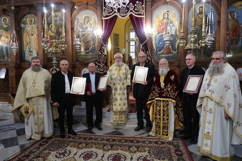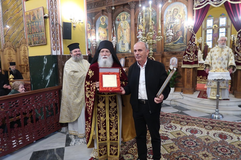 Στο τέλος της Θείας Λειτουργίας, ο προϊστάμενος του Ιερού Ναού μαζί με τους εφημερίους τίμησαν τους απερχόμενους εκκλησιαστικούς επιτρόπους για την όλη προσφορά τους στον Ιερό Ναό και στο λαό του Θεού.