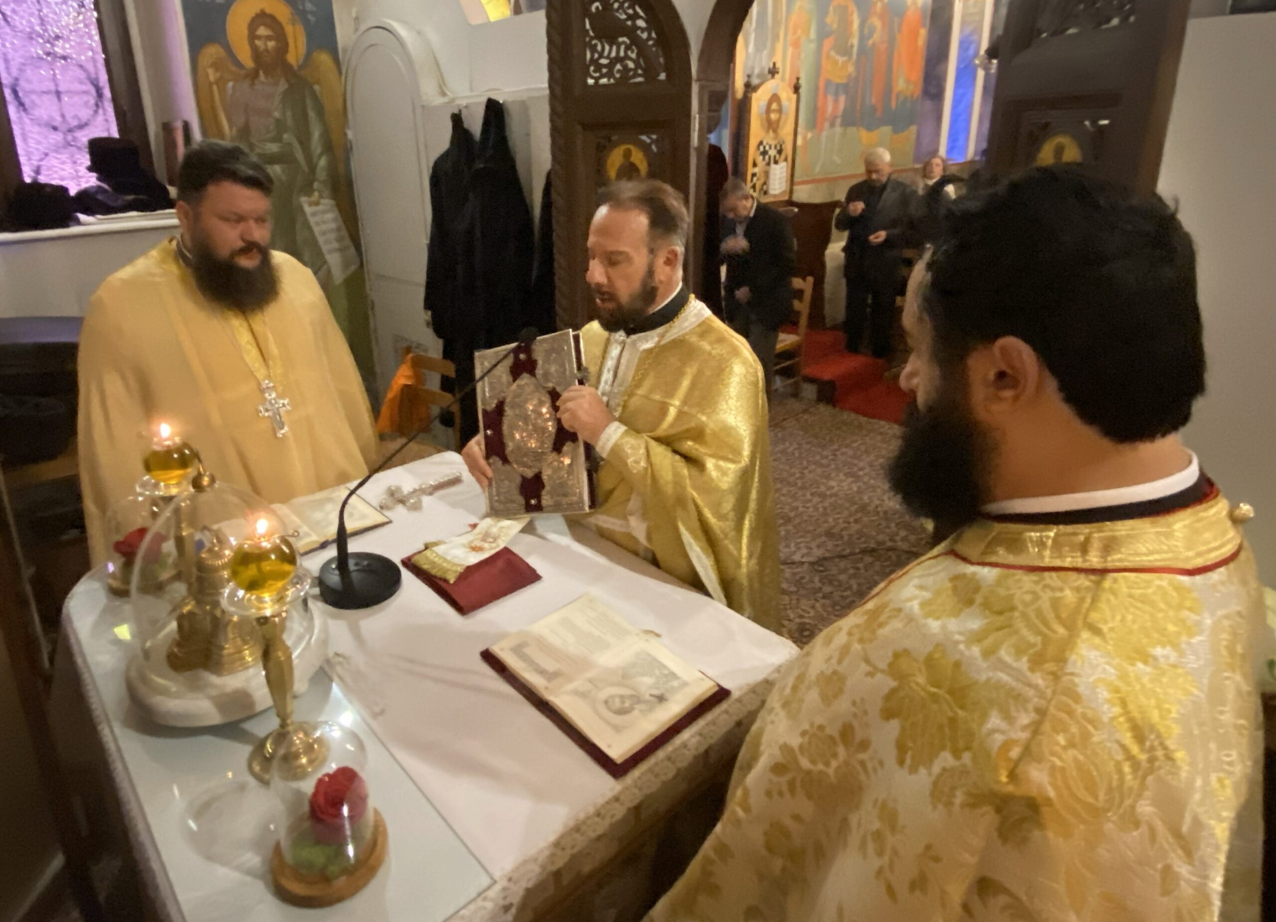 Το απόγευμα της Πέμπτης ετελέσθη ο μεθέορτος Εσπερινός και ιερό Ευχέλαιο προεξάρχοντος του πρωτοπρεσβ. Χαραλάμπους Παπαδόπουλου-εφημερίου της Ενορίας Φύλλων.