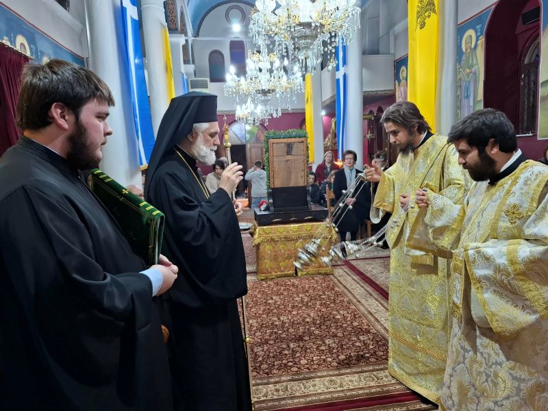 Κατόπιν και με διδακτική διακριτικότητα, ο Σεβασμιώτατος, εξήγησε στους προσελθόντες πιστούς ότι δια της μετανοίας, της πίστεως και της παρρησίας προς τον Θεό Πατέρα μας, καλούμαστε να μετάσχουμε κι εμείς στα χαρακτηριστικά των αγίων, πράγμα το οποίο ευχήθηκε ολοκάρδια σε όλους και ιδιαίτερα στους εορτάζοντες και τις εορτάζουσες.