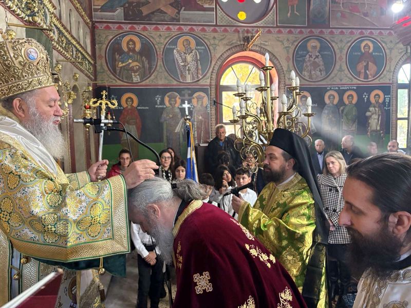 Στο τέλος της Θείας Λειτουργίας, ο Σεβασμιώτατος προχείρισε Πρωτοπρεσβύτερο τον Εφημέριο της Ενορίας, π. Φώτιο Πάσχο, αναγνωρίζοντας την ανύστακτη διακονία του τόσο στην Ενορία, όσο και όπου αλλού τον χρειάζεται η τοπική Εκκλησία, όπως στην Ι. Μονή της Παναγίας Μυρτιδιώτισσας Πάλιουρα.