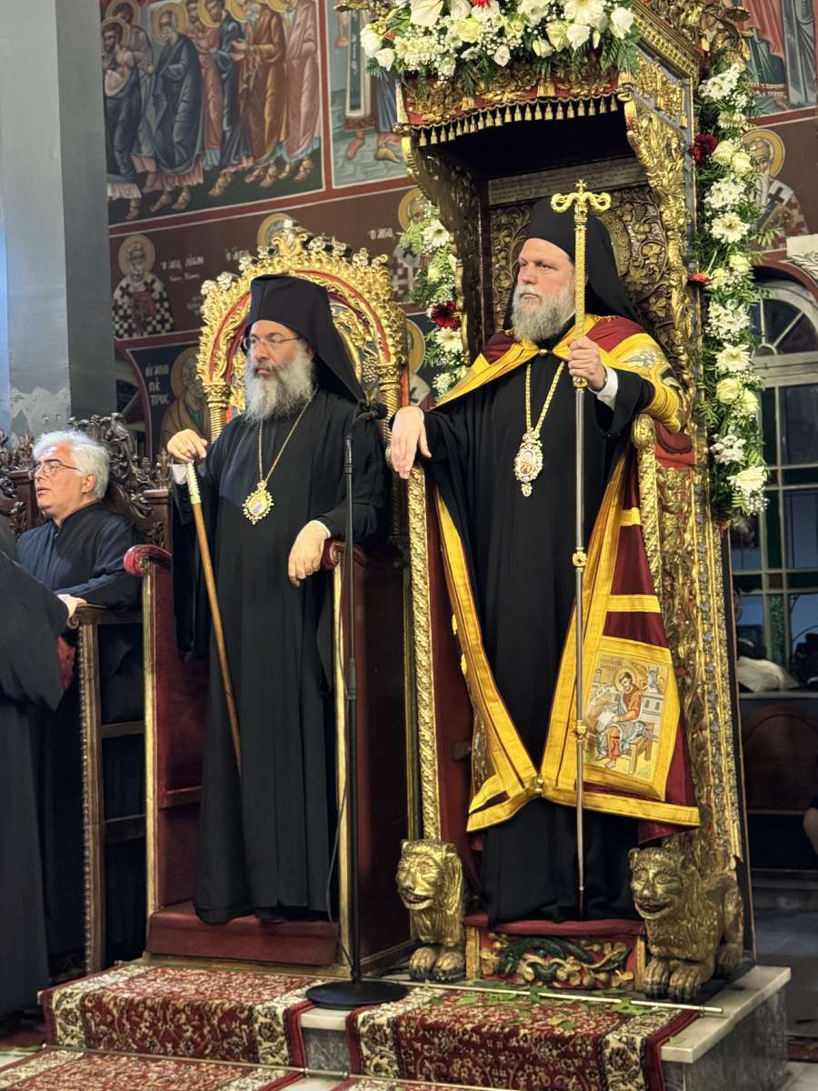 Προ της απολύσεως της Θείας Λειτουργίας, ο Σεβ. Ποιμενάρχης κ. Πρόδρομος εξέφρασε θερμές ευχαριστίες στους δύο αγίους Αρχιερείς, οι οποίοι λάμπρυναν την εφετινή Ιερά Πανήγυρι, και ευχήθηκε η Παναγία να σκεπάζει πάντοτε όλους μας στον αγώνα της καθημερινότητας.