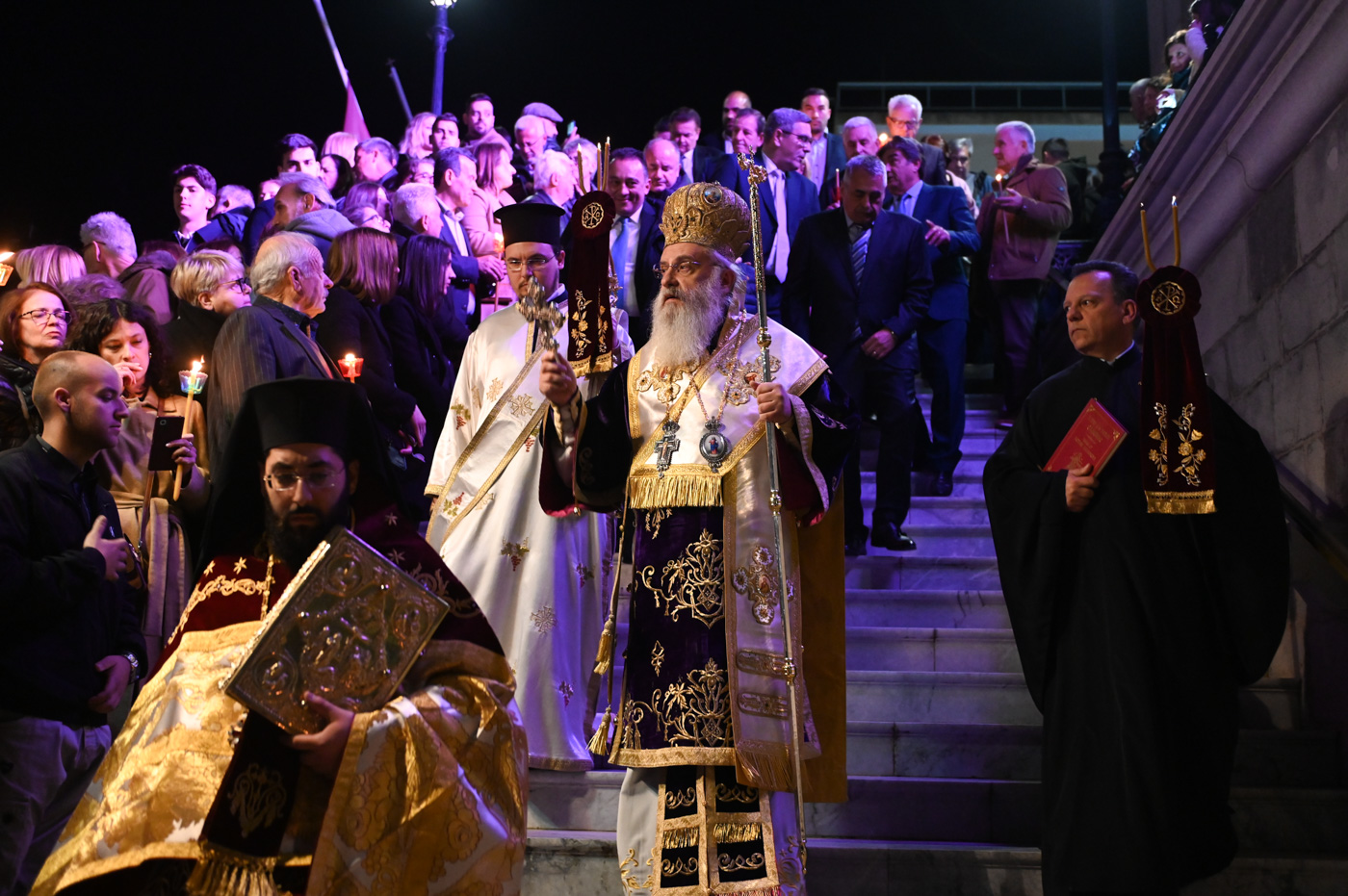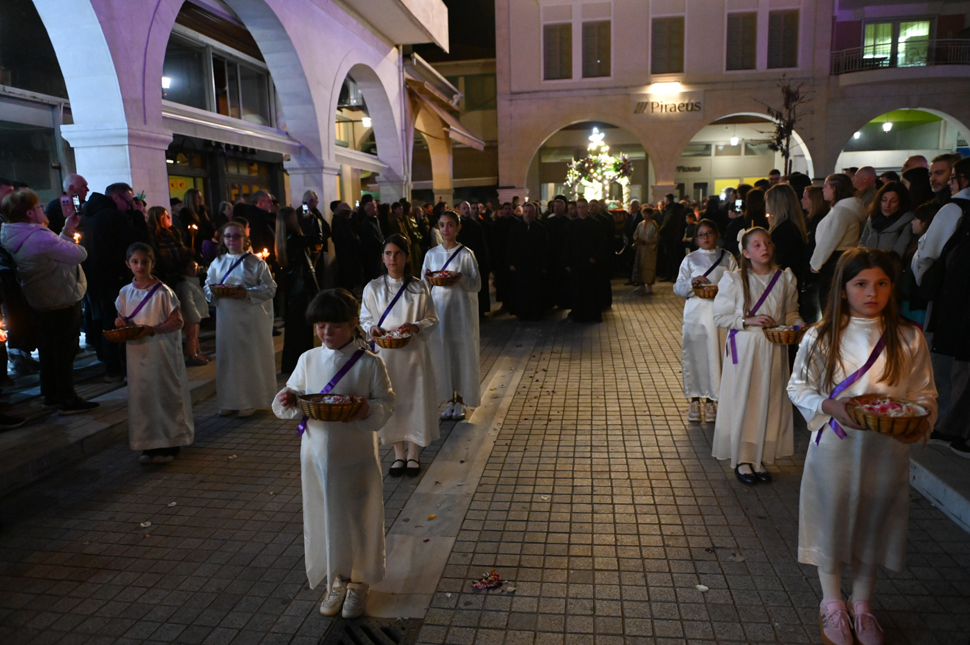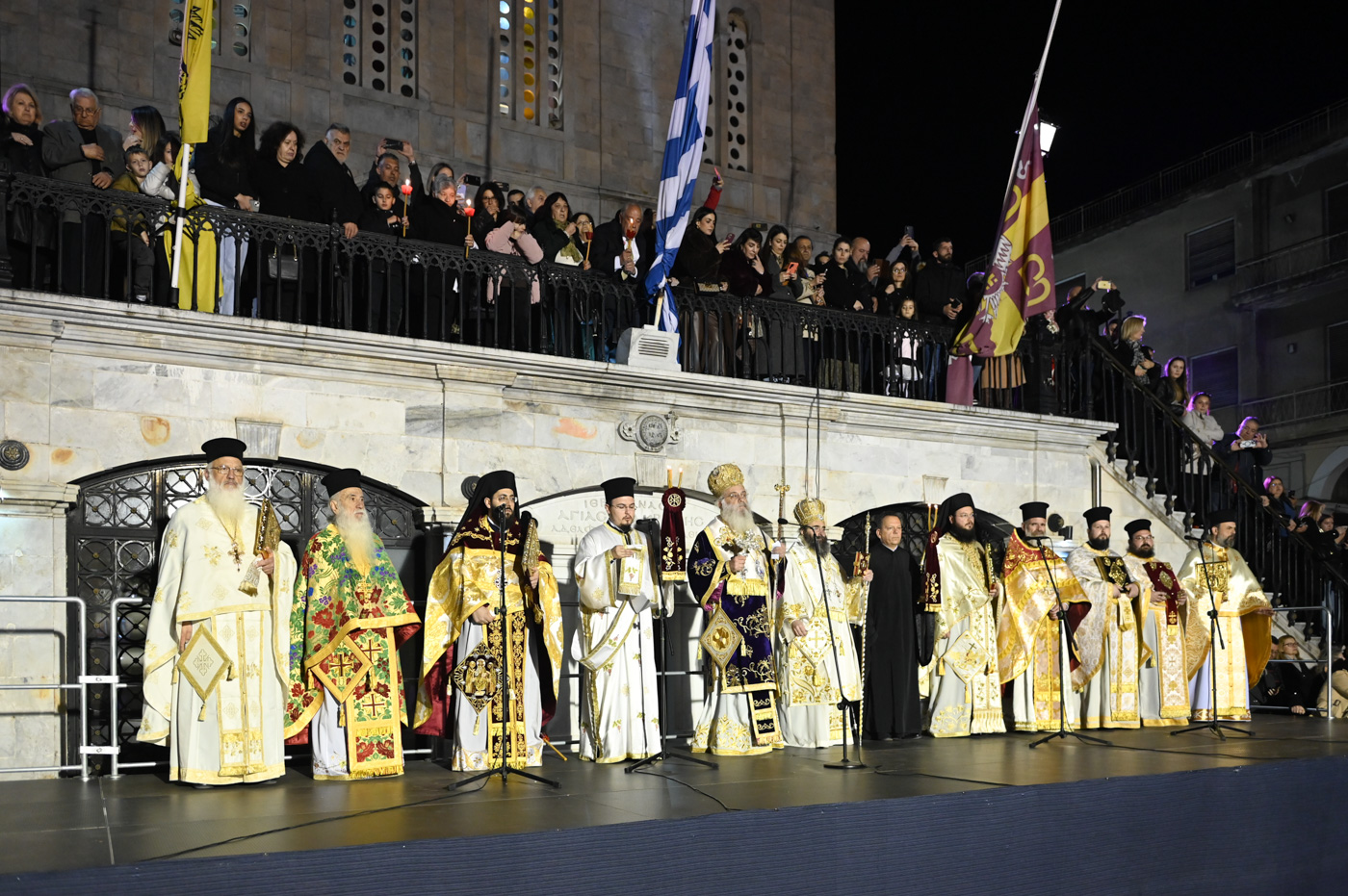 Ακολούθως, τελέσθηκε η περιφορά του Επιταφίου πέριξ του Μητροπολιτικού Ναού, όπου έμπροσθεν αυτού, στην κεντρική πλατεία πραγματοποιήθηκε η συνάντηση των Επιταφίων ενοριών της Τρίπολης. Ο Μητροπολίτης κ. Επιφάνιος, συμπαραστατούμενος από τον Θεοφιλ. Επίσκοπο Τεγέας και από Ιερείς ανέπεμψαν δέηση ενώπιον πλήθους πιστών που κατέκλυσαν την κεντρική πλατεία.