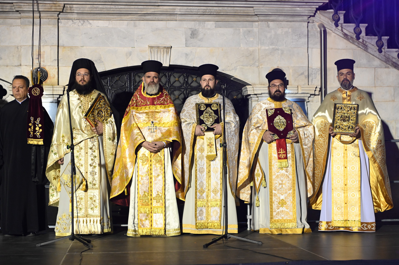 Στην Ακολουθία χοροστάτησε ο Σεβασμιώτατος Μητροπολίτης Μαντινείας και Κυνουρίας κ. Επιφάνιος, πλαισιούμενος από τον Πρωτοσύγκελλο της Μητροπόλεως Πανοσιολ. Αρχιμ. Στέφανο Καππέ και τον Διάκονο π. Αλέξιο Ζαρζάνη.