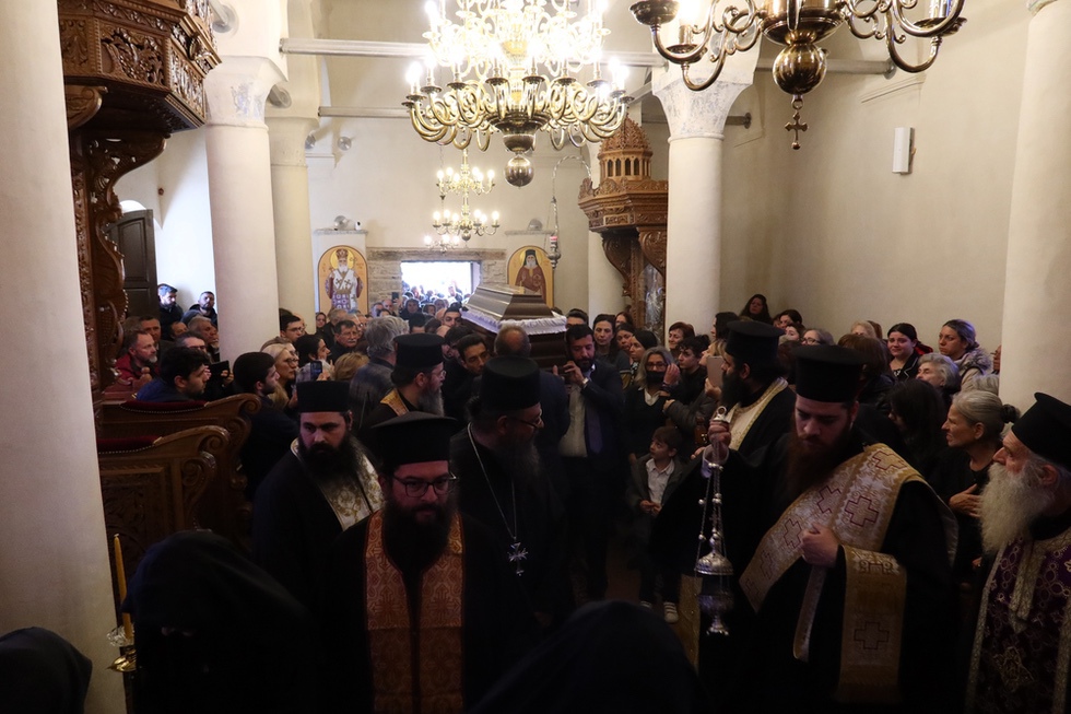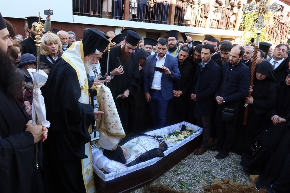 Η εξόδιος ακολουθία και ο ενταφιασμός του πραγματοποιήθηκαν με βαθιά συγκίνηση και παρουσία εκατοντάδων πιστών.