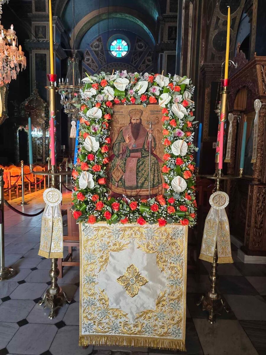Ιδιαίτερη μνεία έκανε στον Άγιο Ιερομάρτυρα Σεραφείμ, ο οποίος με τη θυσία και την ομολογία του έγινε σημείο αναφοράς πίστεως, θάρρους και ελευθερίας για τον λαό της Καρδίτσας.