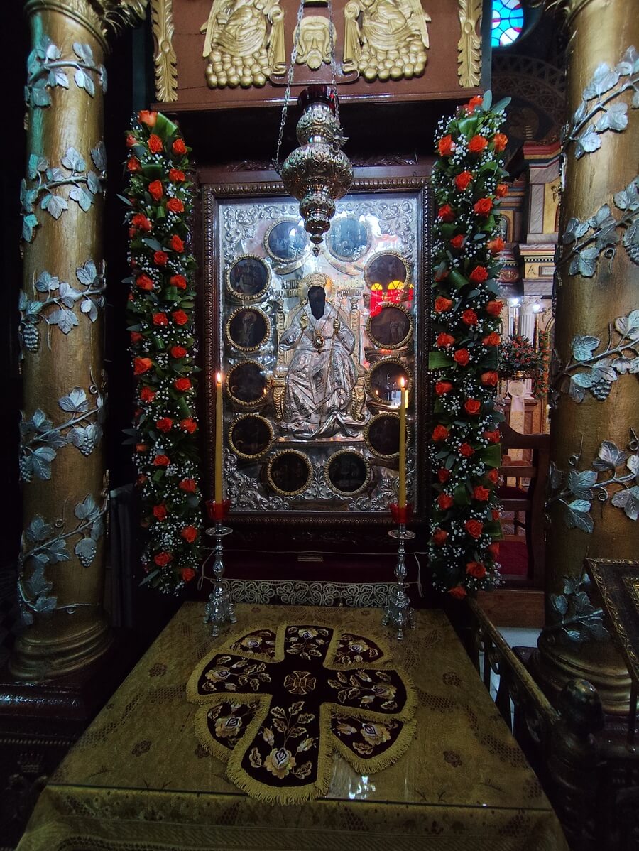 Την τιμία κάρα υποδέχθηκε ο Σεβασμιώτατος Μητροπολίτης Λήμνου και Αγίου Ευστρατίου κ. Ιερόθεος, ενώ στη συνέχεια η λιτανευτική πομπή κατέληξε στον Μητροπολιτικό Ιερό Ναό Αγίων Κωνσταντίνου και Ελένης, όπου τελέσθηκε ο πανηγυρικός Εσπερινός, χοροστατούντος του ιδίου.