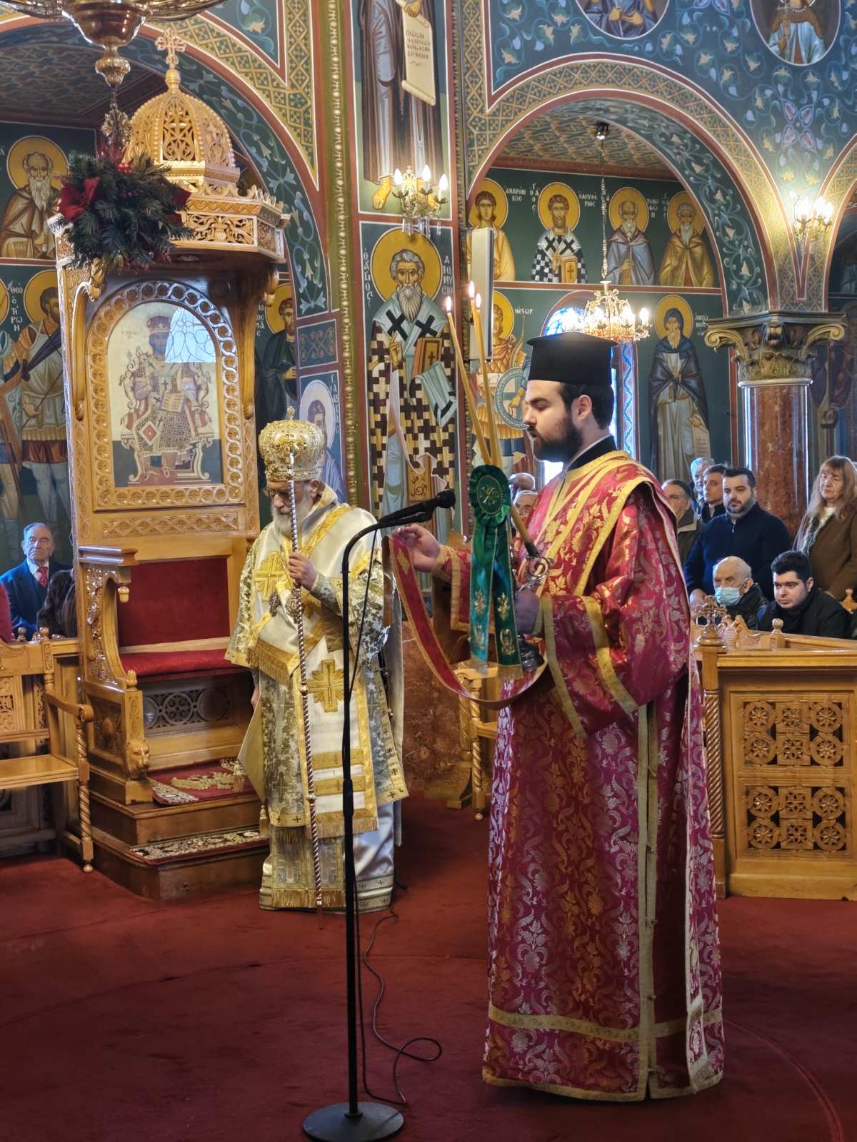 Στο ναό της αγίας Μαρίνης χοροστάτησε στον όρθρο, λειτούργησε, ομίλησε και ευχήθηκε επί τη έναρξη του νέου πολιτικού έτους, ο επίσκοπος Καρυουπόλεως Νεκτάριος. Του επισκόπου συμπαρεστάθησαν ο αρχιμανδρίτης Σεραφείμ Δημητρίου και ο διάκονος Πέτρος Τζάρας, αφού οι τρείς των λοιπών εφημερίων, υπάρχουν ασθενείς.