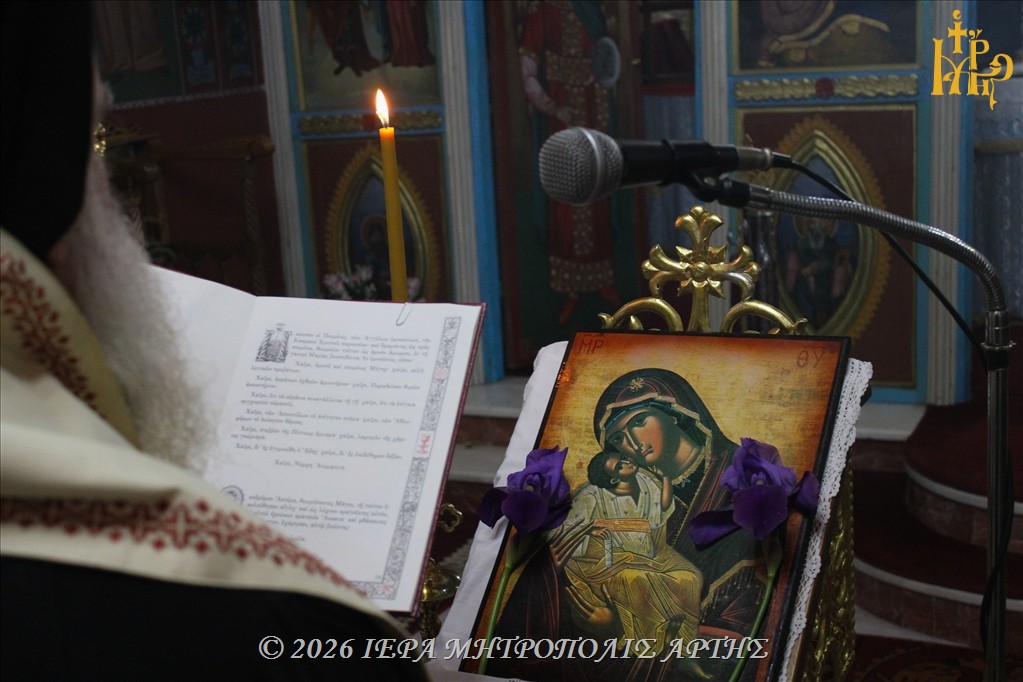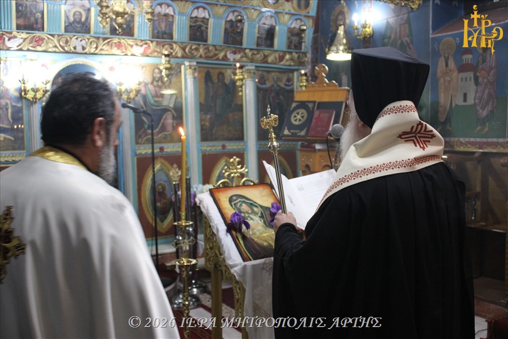 Την Παρασκευή 6 Μαρτίου 2025 το απόγευμα, εψάλη η Ακολουθία της Β΄ Στάσης των Χαιρετισμών προς την Υπεραγία Θεοτόκο, στον Ενοριακό Ιερό Ναό των Παμμεγίστων Ταξιαρχών, στο Δημαριό Άρτης, προεξάρχοντος του Σεβασμιωτάτου Μητροπολίτου Άρτης κ. Καλλινίκου.