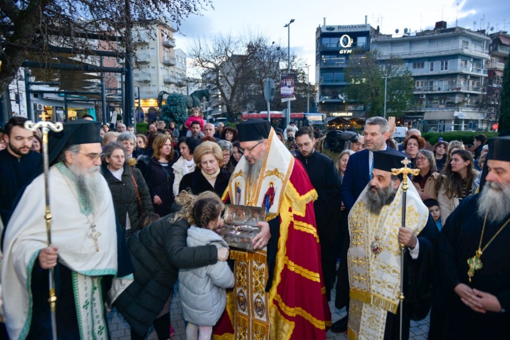 Παρουσία πλήθους πιστών πραγματοποιήθηκε σήμερα Δευτέρα 16 Φεβρουαρίου 2026 και ώρα 6.00′ το απόγευμα, στην πλατεία Αλόγου, κάτω από τον Ιερό Μητροπολιτικό Ναό Αγίου Αχιλλίου Λαρίσης, η υποδοχή του Ιερού Λειψάνου της χειρός του Μεγάλου Βασιλείου. Το Ιερό Λείψανο εκόμισε στη Λάρισα ο Θεοφιλέστατος Επίσκοπος Σκιάθου κ. Ιωάννης, Αρχιγραμματεύς της Ιεράς Συνόδου της Εκκλησίας της Ελλάδος, ενώ το υπεδεχθη ο Σεβασμιώτατος Μητροπολίτης Λαρίσης και Τυρνάβου κ. Ιερώνυμος. Προπορευομένης της Φιλαρμονικής του Ιερού Ναού Αγ. Γεωργίου Μεγαλομάρτυρος, οδ. Βόλου, της Ιεράς Μητροπόλεως Λαρίσης και Τυρνάβου, των Εξαπτέρυγων, λαμπάδων και του Ιερού Κλήρου, το Ιερό Λείψανο μετεκομίσθη στον Ιερο Ναό, ενώ ακολουθούσε το Χριστεπώνυμο πλήρωμα.