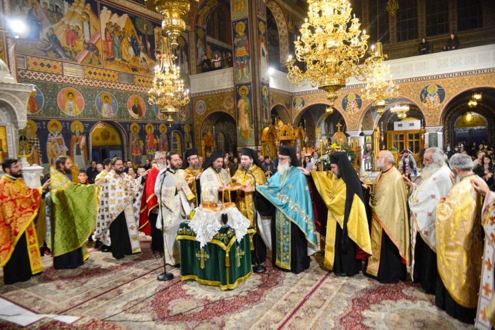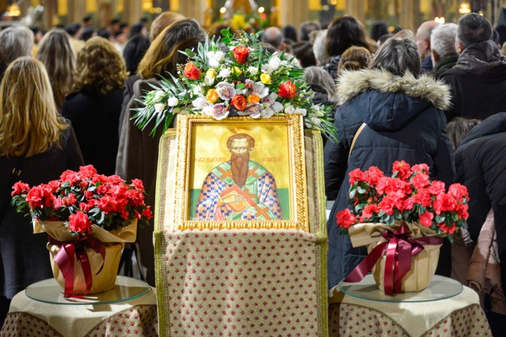 Στο τέλος της Δοξολογίας ο Θεοφιλέστατος Αρχιγραμματεύς προσφώνησε τον Σεβασμιώτατο Μητροπολίτη Λαρίσης και Τυρνάβου, ενώ αναφέρθηκε και στη θεολογία του Μεγάλου Βασίλειου και την παρακαταθήκη των έργων του ως αποτύπωση της εμπειρίας του για την κοινή ωφέλεια των Χριστιανών. Αντιφωνώντας ο Σεπτός Ποιμενάρχης μας αναφέρθηκε με λόγους επαινετικούς για το πρόσωπο του Θεοφιλεστάτου, ευχαρίστησε τον Μακαριώτατο Αρχιεπίσκοπο Αθηνών και πάσης Ελλάδος κ. Ιερώνυμο και την Ιερά Σύνοδο της Εκκλησίας της Ελλάδος για την άδειά τους να μεταφερθεί το Ιετο Λείψανο στη Λάρισα και τόνισε στοιχεία ιστορικότητας που αποδεικνύουν την αυθεντικότητα του και τη φροντίδα των Χριστιανών να το διασώσουν μέσω των αιώνων.
