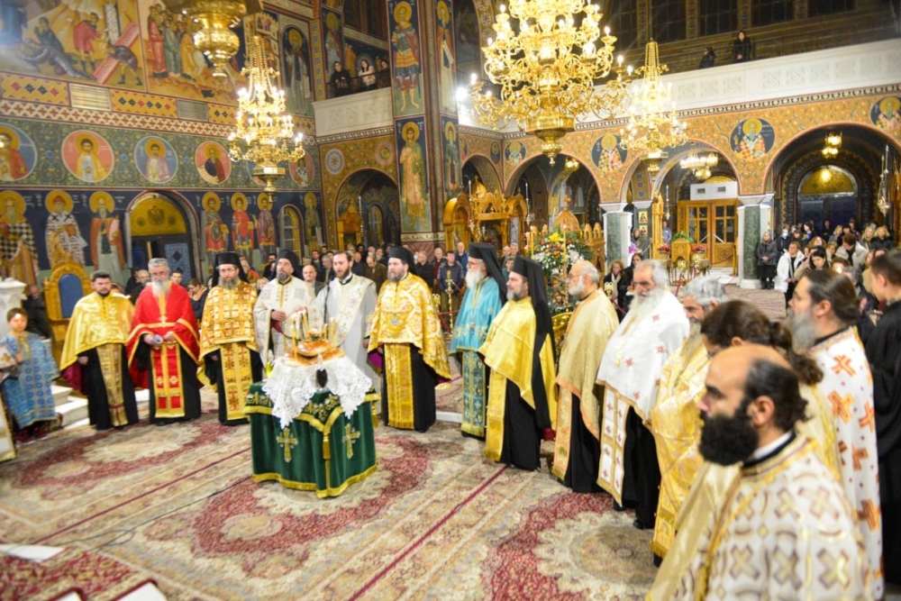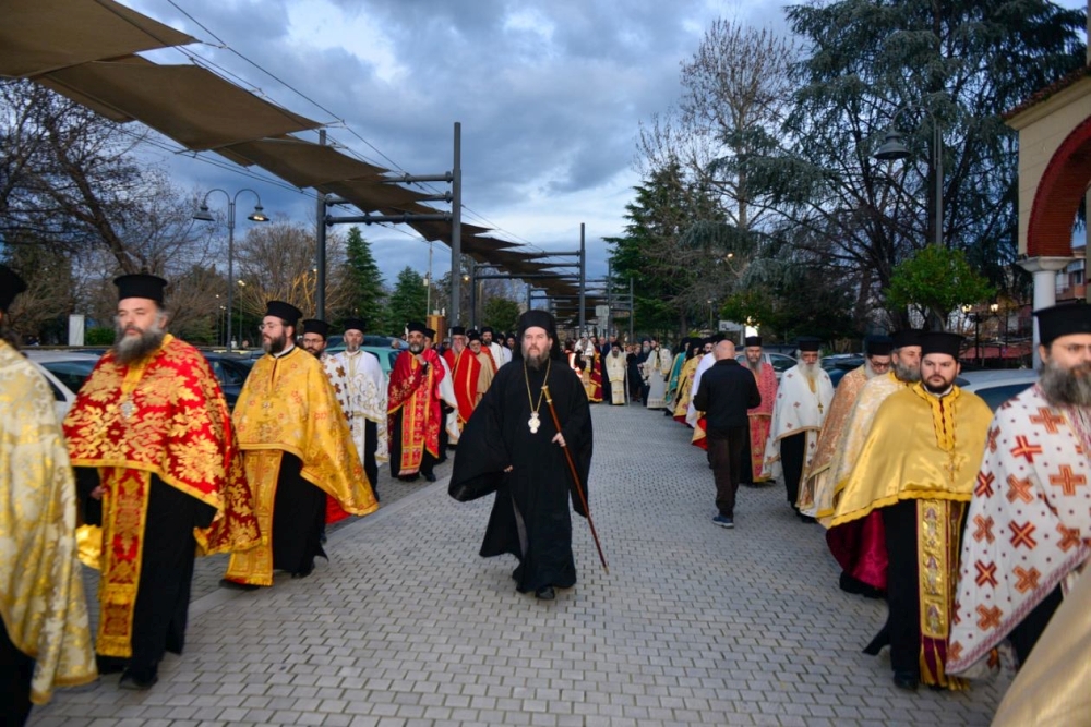 Στη συνέχεια ο Σεβασμιώτατος προέπεμψε προφρόνως τον Θεοφιλέστατο, ο οποίος επέστρεψε οίκαδε. Μετά ταύτα ετελέσθη Πανηγυρικός Εσπερινός με συμμετοχή πλήθους Ιερέων πρωτοστατούντος του Πανοσιολ. Αρχιμ. κ. Ιγνατίου Μουρτζανού, Πρωτοσυγκέλλου της Ιεράς Μητροπόλεως Λαρίσης και Τυρνάβου. Μετά την ευλόγηση των άρτων ο Σεβασμιώτατος κήρυξε τον Θείο Λόγο, αναφερθείς στα νεανικά χρόνια του Μεγάλου Βασιλείου και την επίδραση της γιαγιάς του Μακρίνας στη διαμόρφωση της προσωπικότητας του, καθώς και της αδελφής του στη λήψη της απόφασης να αφιερωθεί στον Χριστό.