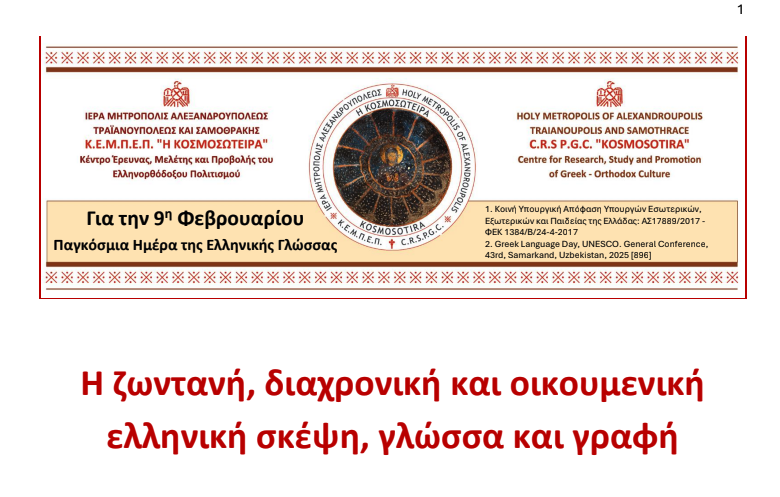 Η ζωντανή, διαχρονική και οικουμενική ελληνική σκέψη, γλώσσα και γραφή