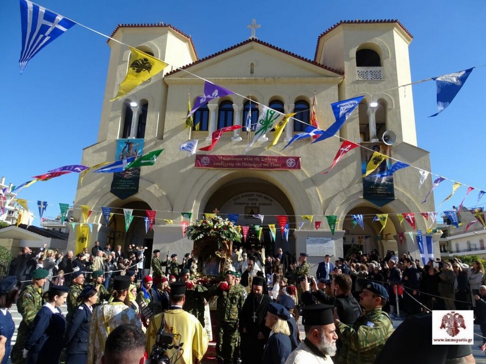 Μετά την δέηση υπέρ υγείας, στην διασταύρωση των οδών Κωνσταντίνου Παλαιολόγου και Λυκούργου, η λιτανευτική πομπή επέστρεψε στη είσοδο του Ιερού Ναού, όπου ο Παναγιώτατος Οικουμενικός Πατριάρχης ευλόγησε τον ευσεβή λαό ευχόμενος να βρίσκεται, δια των πρεσβειών του Πολιούχου Οσίου Νίκωνος, πάντα υπό την Σκέπη της Αγίας Τριάδος.