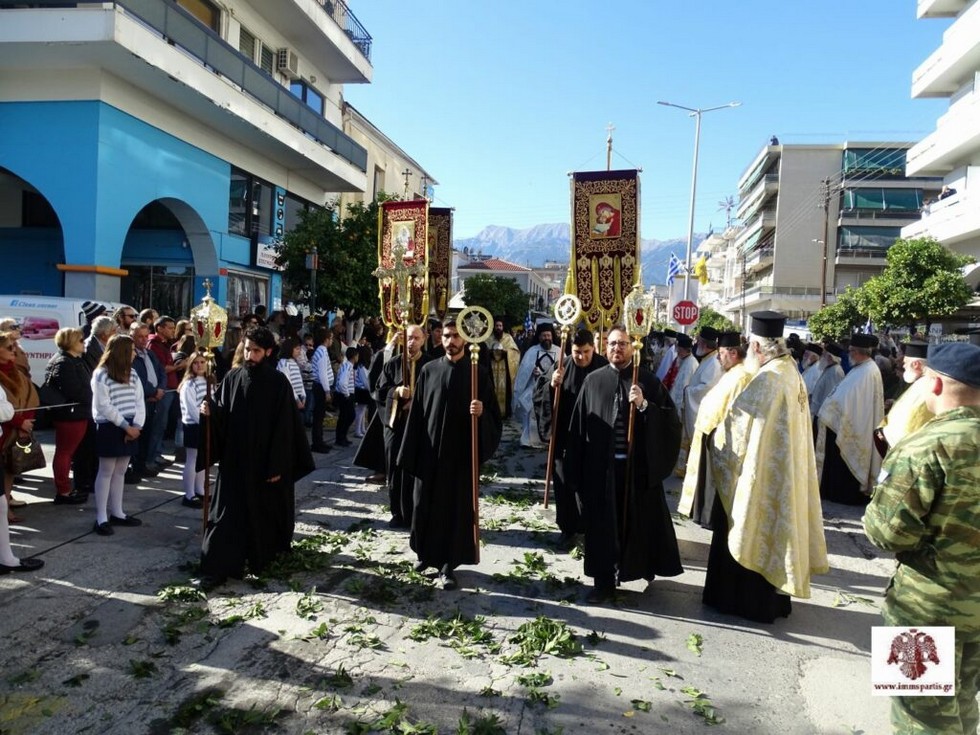Αμέσως μετά, σε κλίμα κατάνυξης, υπό τους παιανισμούς της Φιλαρμονικής του Δήμου Σπάρτης και με τη συνοδεία τιμητικού στρατιωτικού αγήματος, έγινε η λιτάνευση της ιερής εικόνας του Οσίου Νίκωνος του ‘’Μετανοείτε’’ στο κέντρο της λακωνικής πρωτεύουσας. Στη λιτανευτική πομπή συμμετείχαν ο Παναγιώτατος, οι Αρχιερείς, ο ιερός κλήρος της τοπικής μας Εκκλησίας, μαθητές και μαθήτριες των σχολείων της πόλης με τη συνοδεία εκπαιδευτικών τους και πολιτιστικοί σύλλογοι της πόλεως. Ο ευσεβής λαός της Λακεδαίμονος με ενθουσιώδεις αντιδράσεις εκδήλωσε τον σεβασμό και την αγάπη του προς το πρόσωπο της Α.Θ.Π. του Οικουμενικού Πατριάρχη κ.κ. ΒΑΡΘΟΛΟΜΑΙΟΥ.