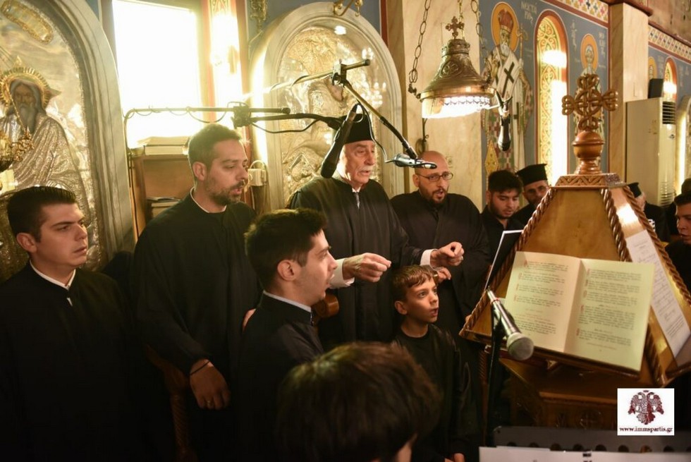Όπως κατά την τέλεση της Δοξολογίας και του πανηγυρικού Πατριαρχικού Εσπερινού, και κατά την κυριώνυμη ημέρα άριστη ήταν η παρουσία των καλλικέλαδων ιεροψαλτών και στα δύο ιερά αναλόγια. Συγκεκριμένα, στο δεξιό αναλόγιο έψαλλαν μέλη του Συλλόγου Ιεροψαλτών Λακωνίας “Πέτρος ο Πελοποννήσιος” με χοράρχη τον Πρωτοψάλτη κ. Παναγιώτη Τζανάκο, Άρχοντα Μαΐστορα της Μεγάλης Εκκλησίας. Στο αριστερό αναλόγιο έψαλλαν μέλη της χορωδίας της Ιεράς Μητροπόλεως Μαντινείας και Κυνουρίας, με χοράρχη τον Πρωτοψάλτη του Μητροπολιτικού Ναού Τριπόλεως και καθηγητή εκκλησιαστικής μουσικής κ. Βασίλειο Γεωργαρά.