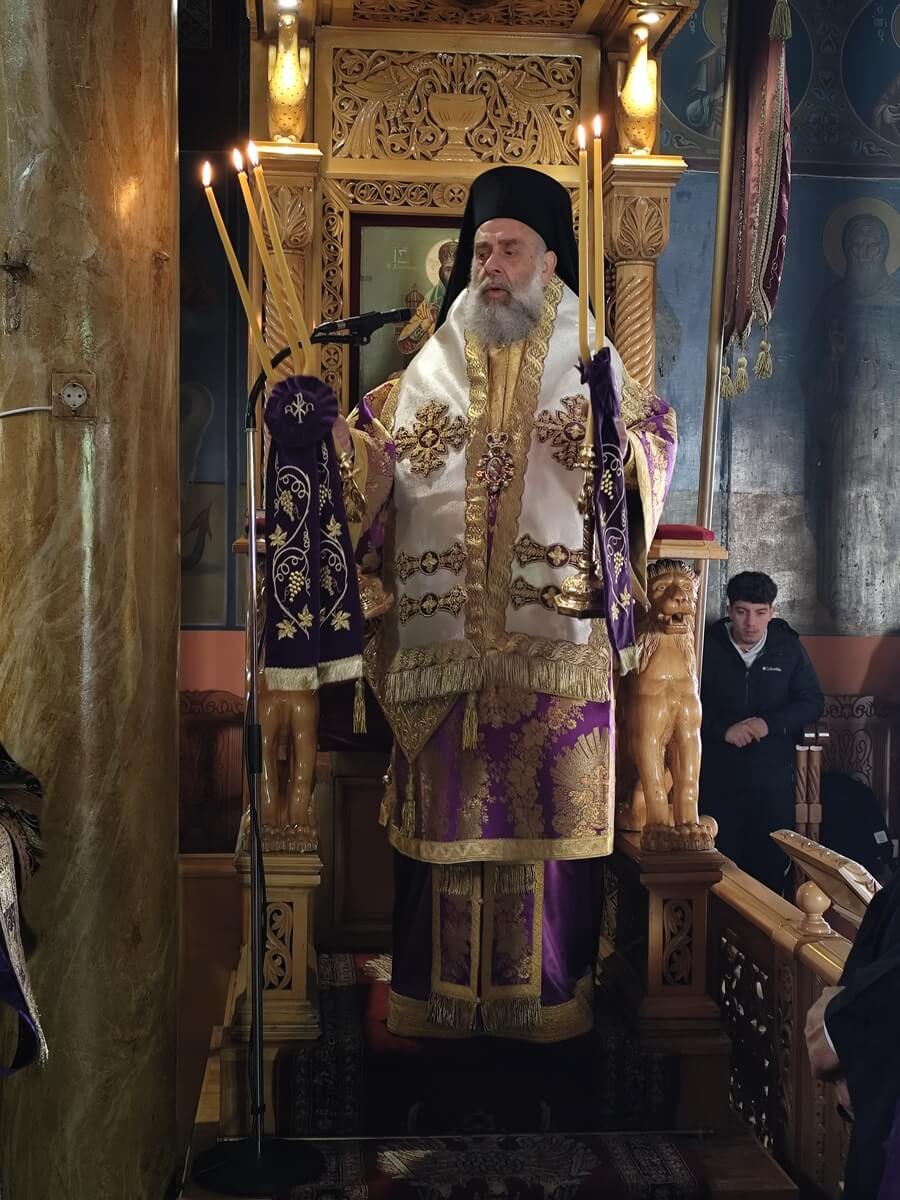 Στο τέλος της ακολουθίας, ο Σεβασμιώτατος απηύθυνε το θείο κήρυγμα, μέσα από το οποίο ανέπτυξε με γλαφυρό και θεολογικά τεκμηριωμένο λόγο τη σημασία του Ακαθίστου Ύμνου, συνδέοντάς τον τόσο με την ιστορική πορεία της Εκκλησίας όσο και με το βαθύ σωτηριολογικό της βίωμα.
