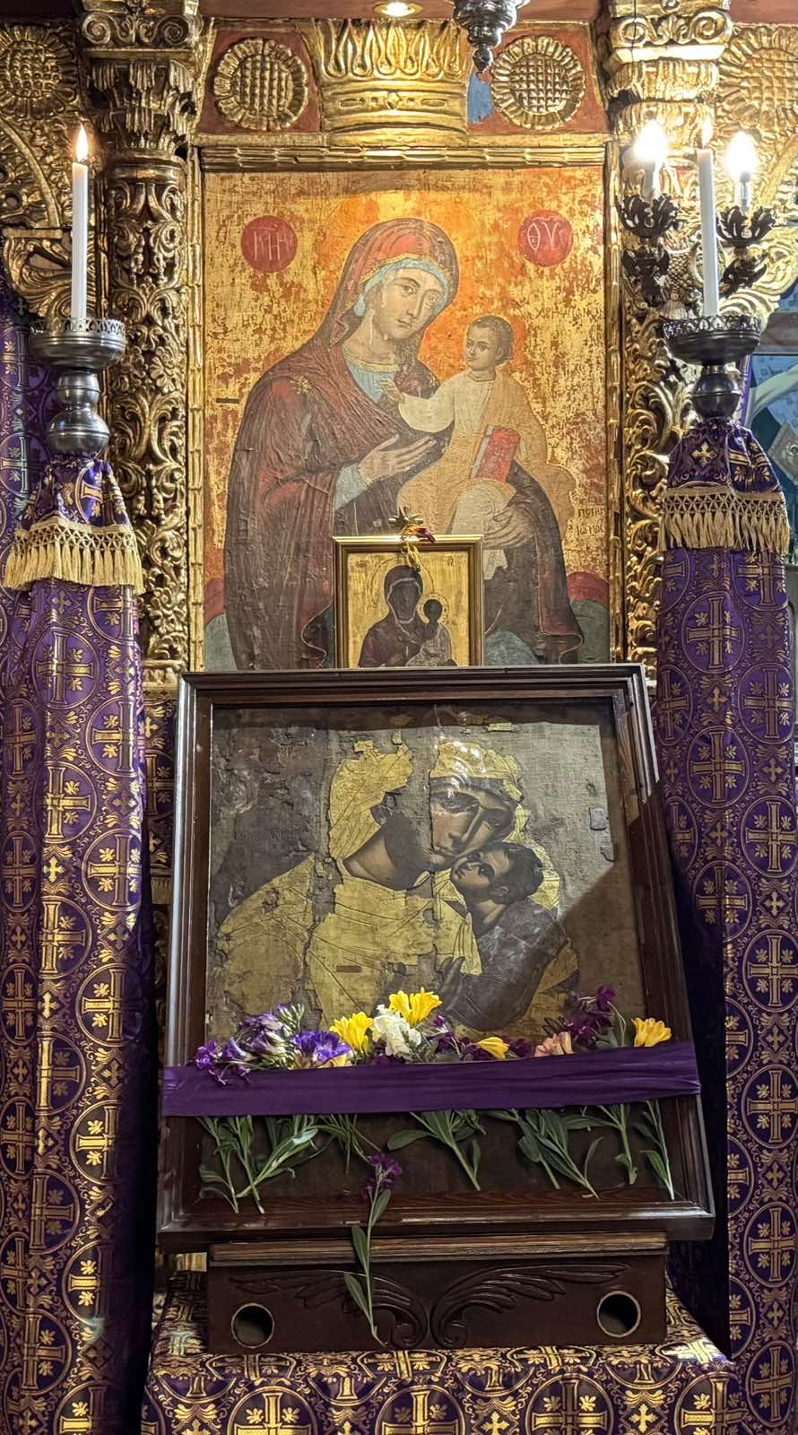 Συνεχίζοντας, ο Σεβασμιώτατος στάθηκε στη φράση «χαῖρε, κρατὴρ κιρνῶν ἀγαλλίασιν», επισημαίνοντας ότι ο «κρατήρ» είναι το δοχείο που προσφέρει το ποτήριον της αληθινής Ζωής, δηλαδή το ίδιο το Σώμα και το Αίμα του Χριστού. Μέσα από τη μετοχή στα Άχραντα Μυστήρια, ο άνθρωπος γίνεται κοινωνός της θείας ζωής, σύσσωμος και σύναιμος με τον Θεό και έτσι υπερβαίνει το φόβο του θανάτου. Η ζωή, όπως τόνισε, δεν τερματίζεται στο θάνατο αλλά οδηγεί στην Ανάσταση, την οποία χάρισε ο Αναστάς Κύριος σε όλη την ανθρωπότητα. Όλα αυτά, συνδέονται με το πρόσωπο της Παναγίας, η οποία είναι και η κατέχουσα τα Δευτερεία της Αγίας Τριάδος. Ποιος τυχόν δεν ατενίζει το πρόσωπο της Παναγίας μας και δε φλέγεται η ψυχή και η καρδιά του από αγάπη, από σεβασμό και απευθύνεται σε Εκείνην με κάθε αφοσίωση; Έτσι, γίνεται η Υπεραγία Θεοτόκος μεσίτρια που μεταφέρει τις προσευχές των πιστών στο θρόνο του Θεού.